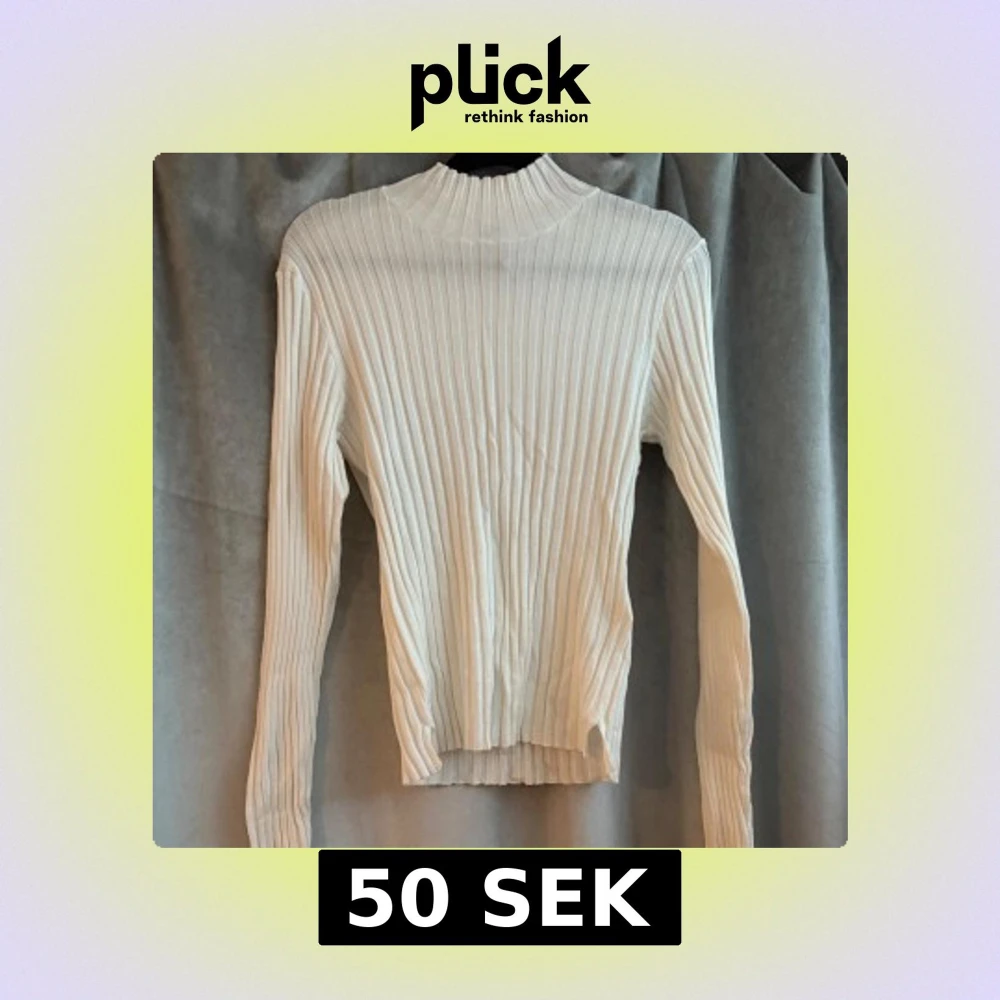 Snygg vit ribbad polotröja med lång ärm och hög hals. Tröjan har en tight passform och är tillverkad i ett stretchigt material som sitter skönt på kroppen. Använt några gånger.