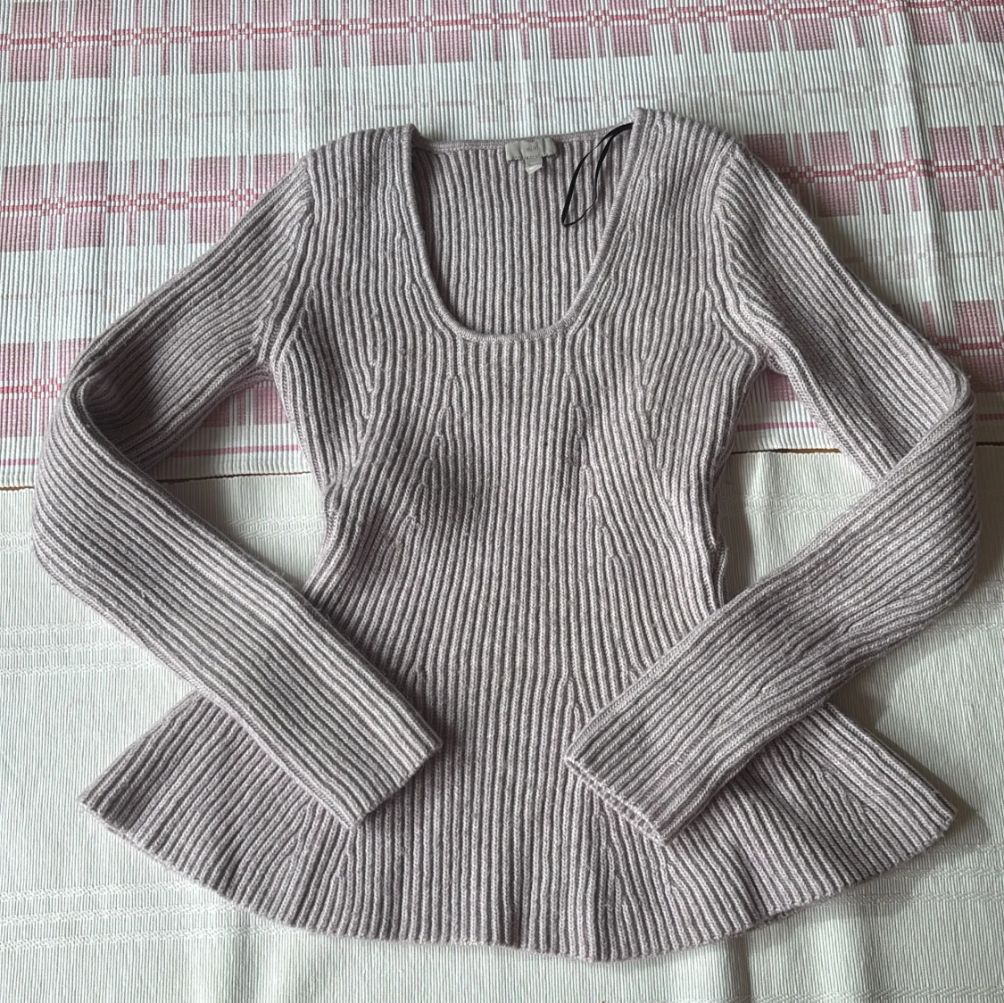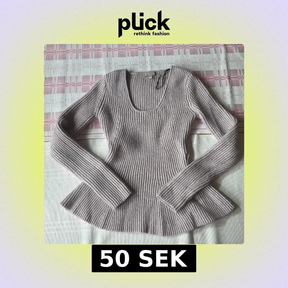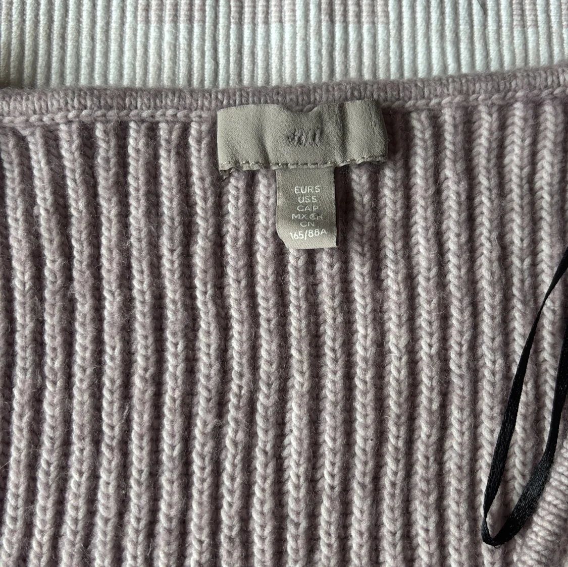 Säljer en lila ( syns inte riktigt på bilden) stickad tröja från H&M i storlek S. Tröjan har ett ribbat mönster, rundad halsringning och långa armar.