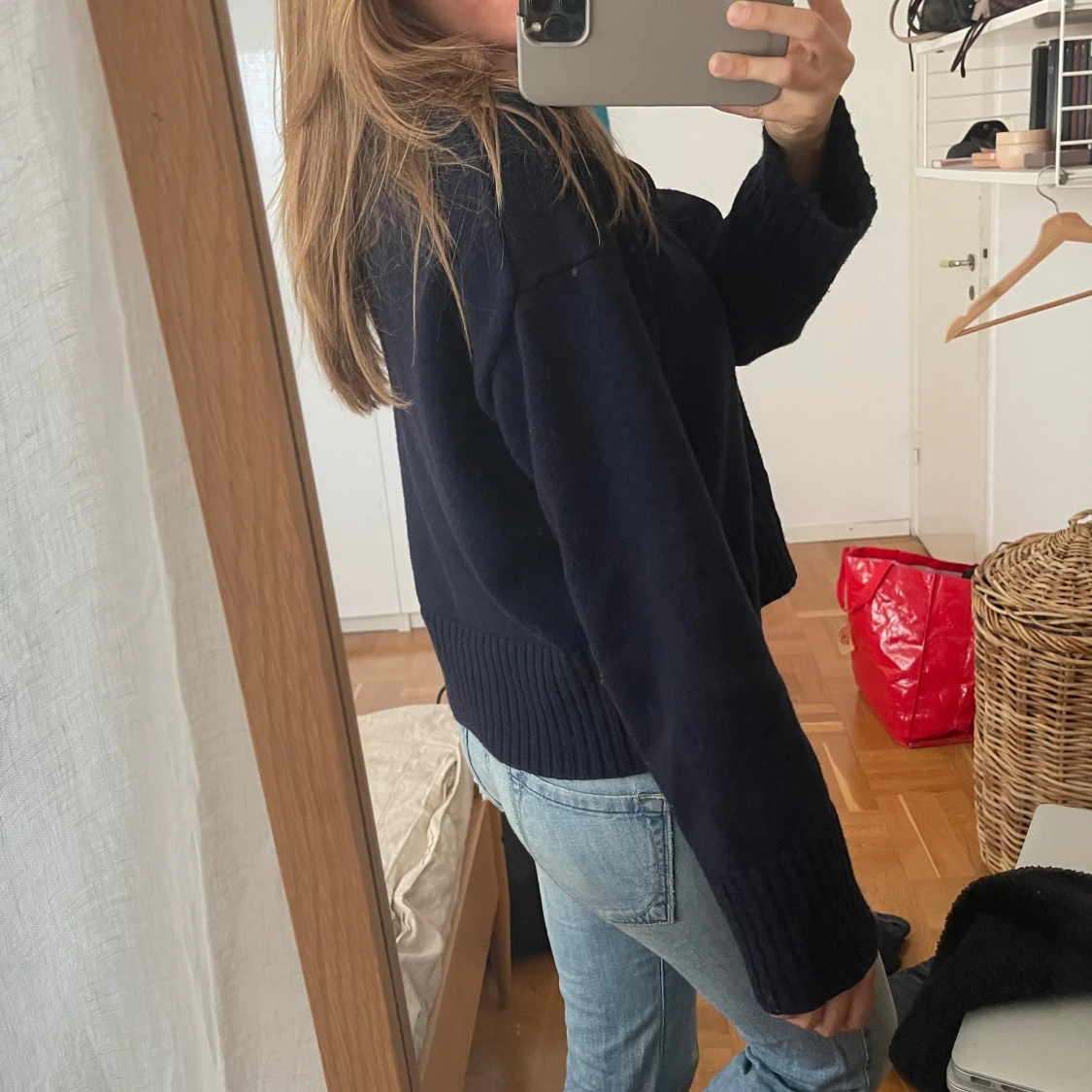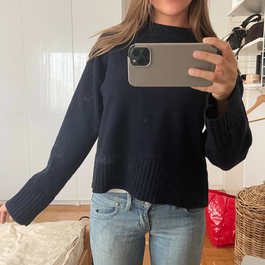 Supermysig mörkblå stickad tröja🤗 Använd ett fåtal gånger 💞