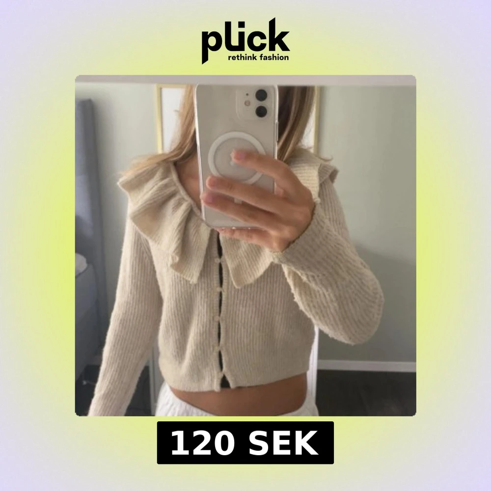 Superfin beige kofta från H&M med volangkrage och pärlknappar framtill. I storlek S. Hör av er vid frågor! 🩷