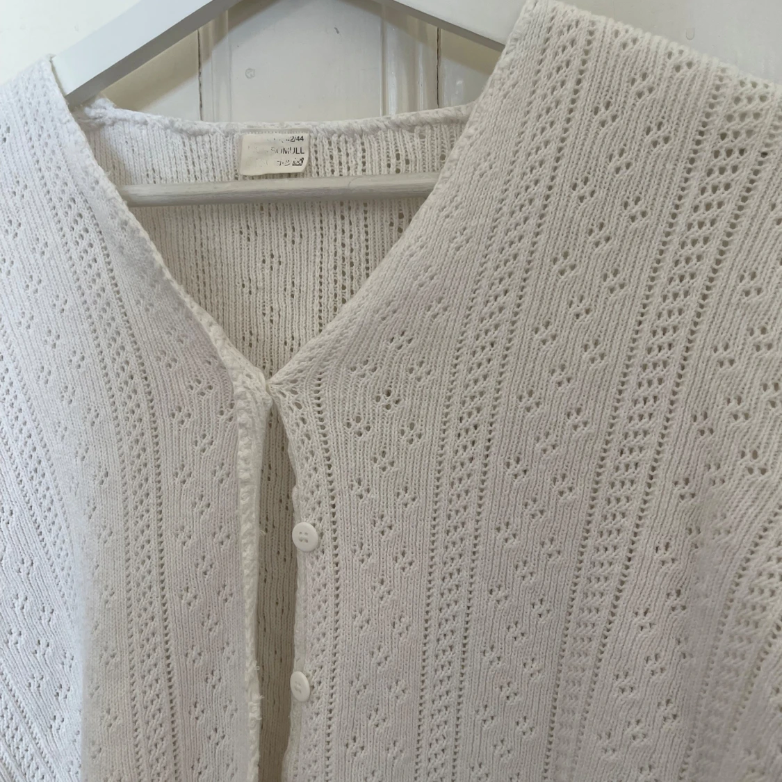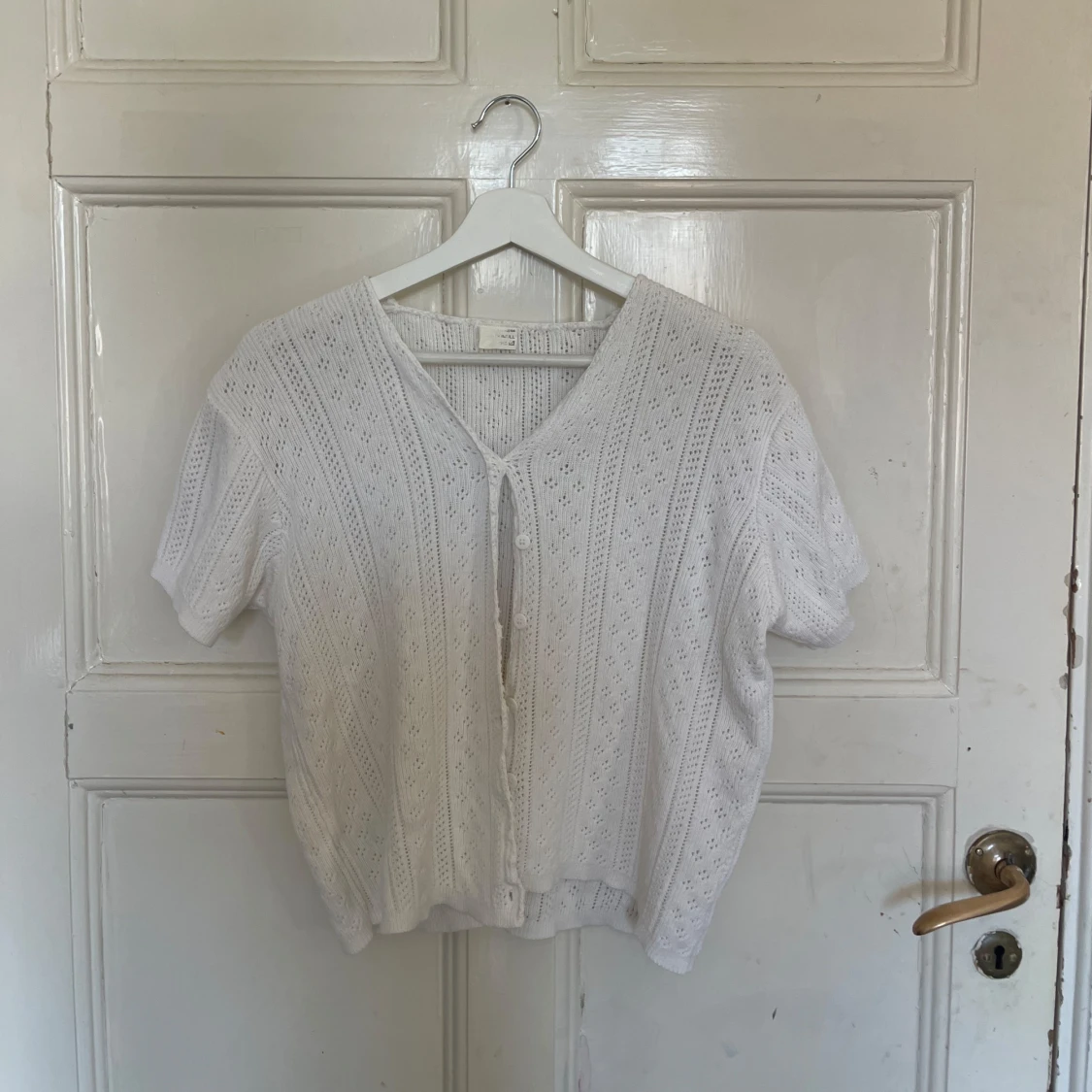 Vit stickad kofta från H&M med korta ärmar och v-ringning.