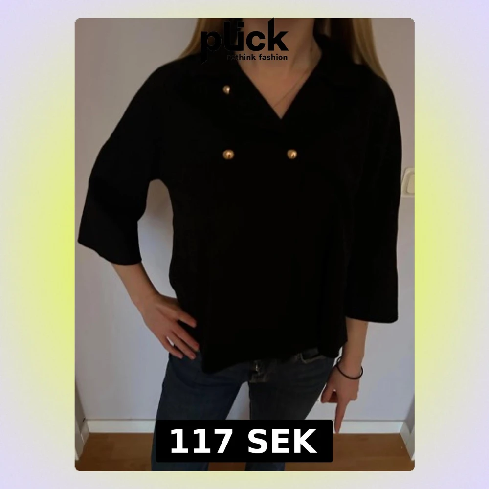 Snygg svart kofta med guldknappar framtill. Koftan har trekvartsärm och är lagom tjock i materialet. Perfekt under en tunnare jacka! 💓💓