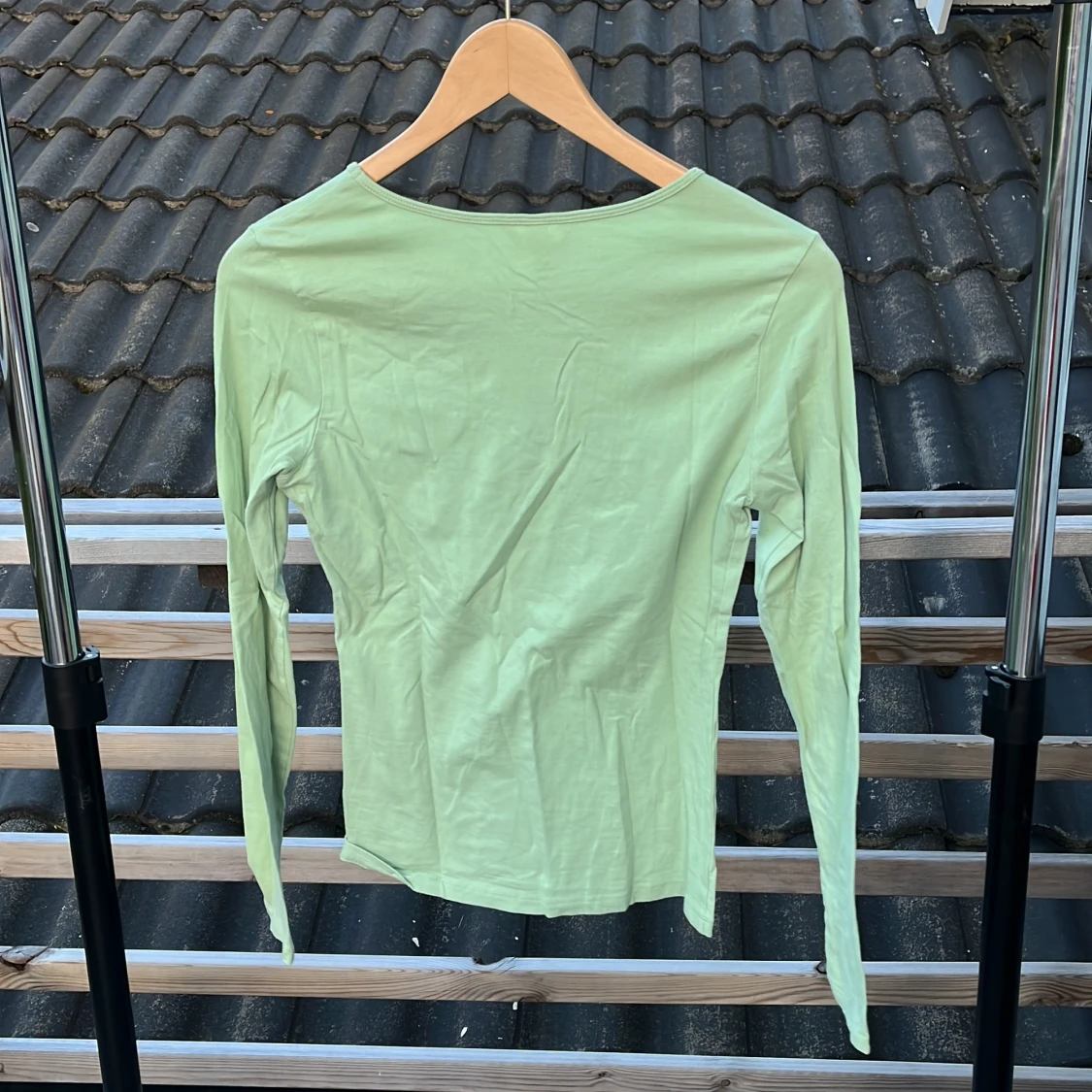 Enkel och stilren ljusgrön långärmad tröja från H&M. Tröjan har rund halsringning och är gjord i mjuk bomull, perfekt för lager-på-lager eller som den är. Passformen är normal och materialet känns lätt och bekvämt mot huden.
