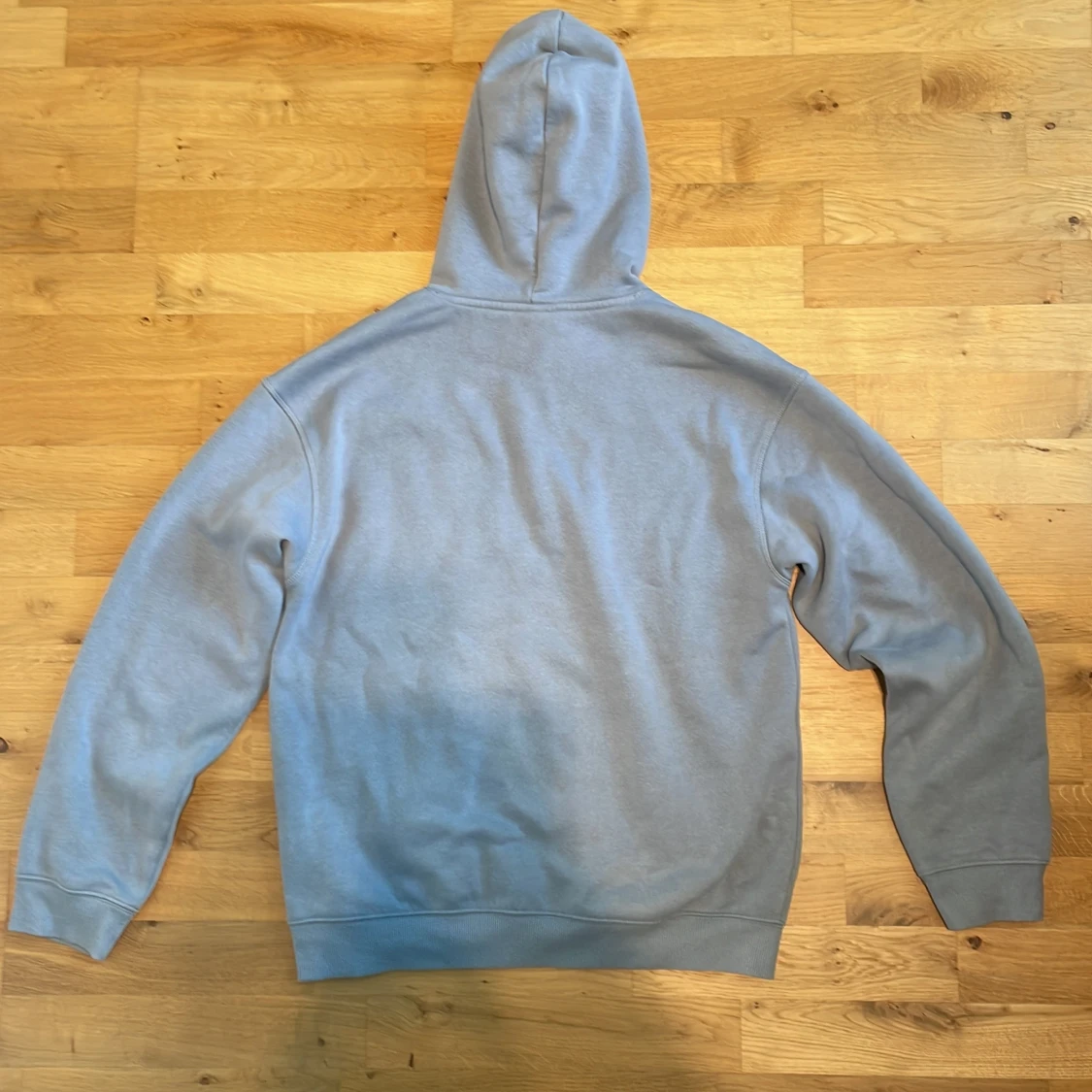 En stilren ljusgrå hoodie från H&M i relaxed fit. Tröjan har huva med snörning, magficka och långa ärmar. Jätteskön classic hoodie för en stilren chill look. Storlek: S. Knappt använd.