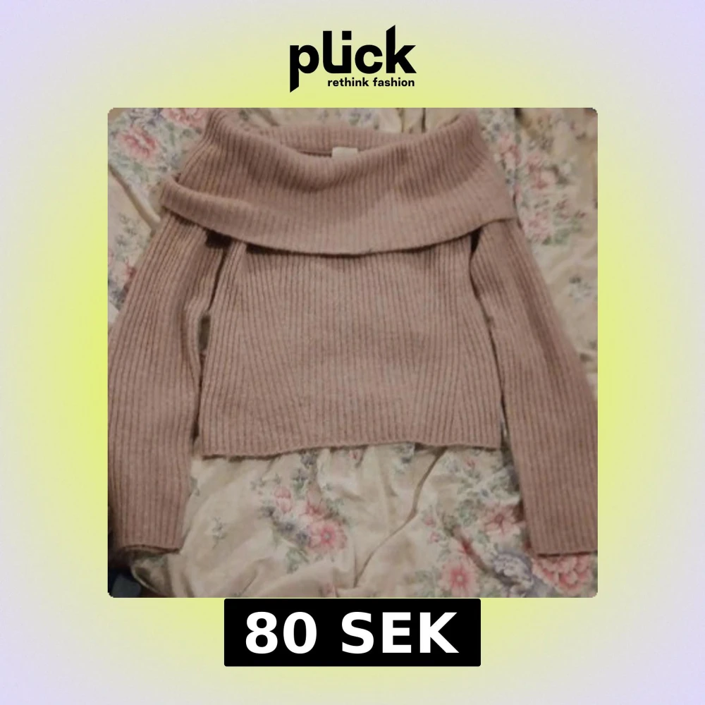 Superfin ribbstickad ljusrosa tröja från H&M med bred offshoulderkrage. Långärmad och i mjukt material, perfekt för kyliga dagar. Snygg att styla med jeans eller kjol för en trendig look.