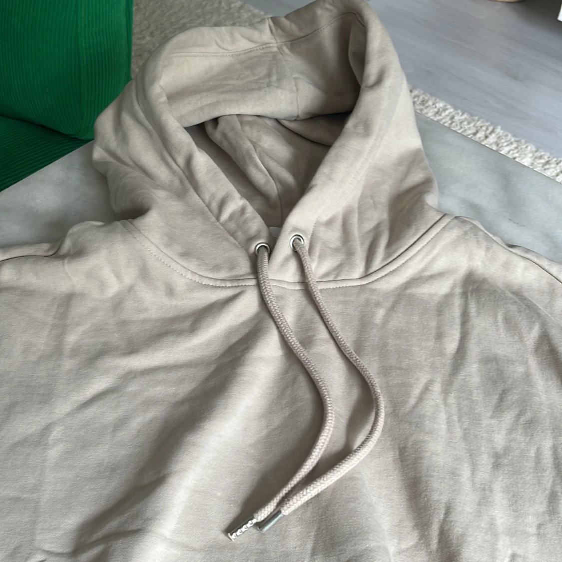 Säljer en beige hoodie från H&M i loose fit. Tröjan har huva med snörning, känguruficka och långa ärmar. Storlek S men är ganska stor i storleken skick 10/10 inga defekter alls. De bara höra av sig vid frågor😊