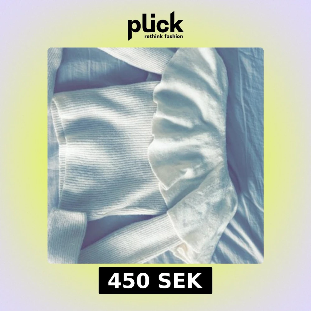 Säljer en stilren vit stickad tröja från H&M. Tröjan har en ribbad struktur och volangdetaljer som ger en unik touch. Perfekt för att hålla sig varm och snygg under kyligare dagar. Passar bra till både jeans och kjol!. Man kan också ha den utomlands eller på sommaren, passar perfekt!