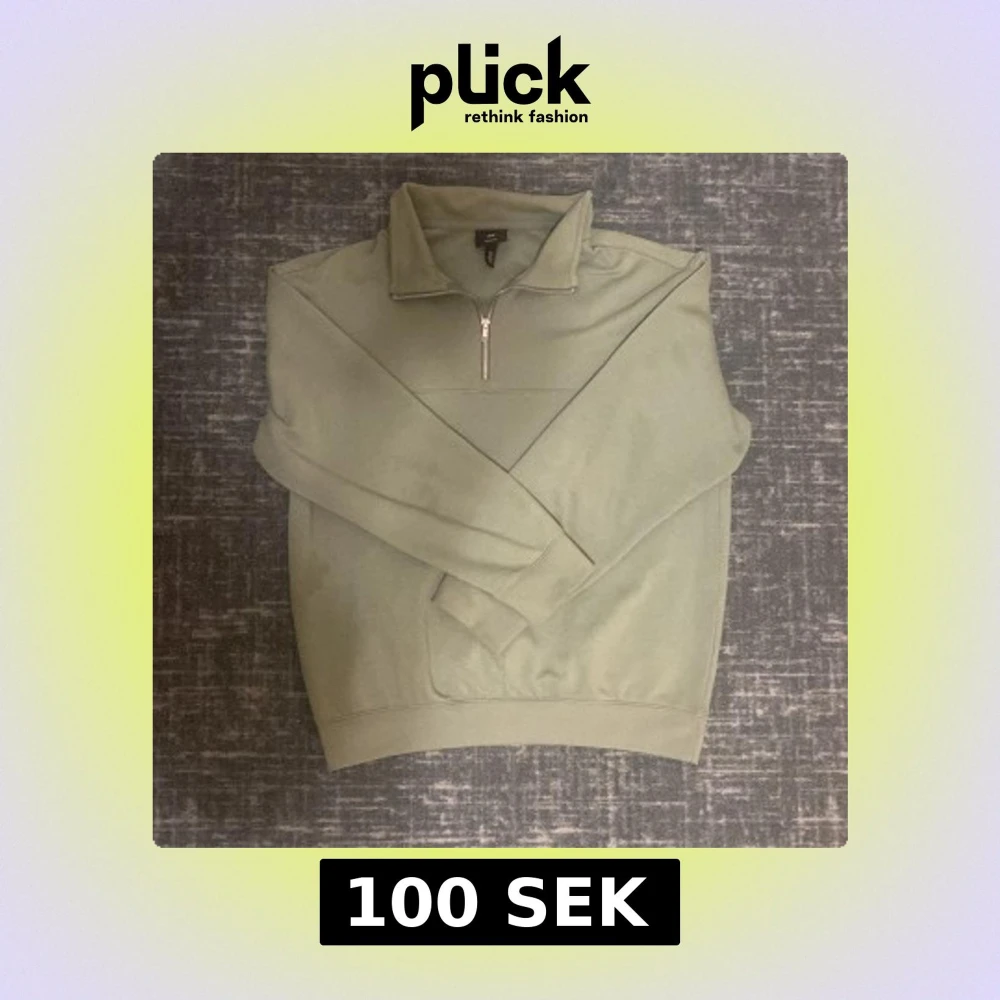Säljer en stilren grön tröja från H&M med dragkedja vid halsen. Tröjan har en relaxed fit och är perfekt för en avslappnad look. Den är långärmad och tillverkad i ett mjukt material.