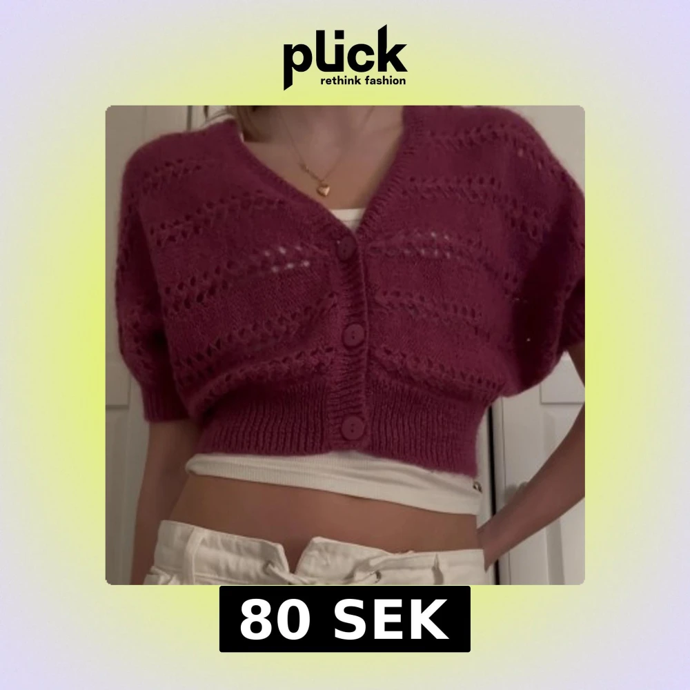 💜Superfin rosa kofta från H&M i storlek S. Den är croppad med korta ärmar, stickad i ett luftigt mönster och har tre matchande knappar framtill. Perfekt att styla över ett linne eller t-shirt för en chill look. 💜