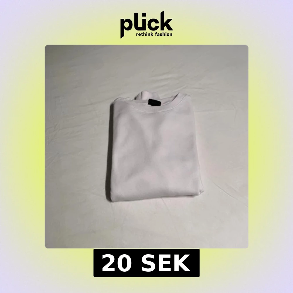 Enkel och stilren vit sweatshirt från H&M i storlek S. Tröjan har rund hals, ribbade muddar och är tillverkad i mjuk bomull. Perfekt för en clean och avslappnad look. Liten grön fläck på armen