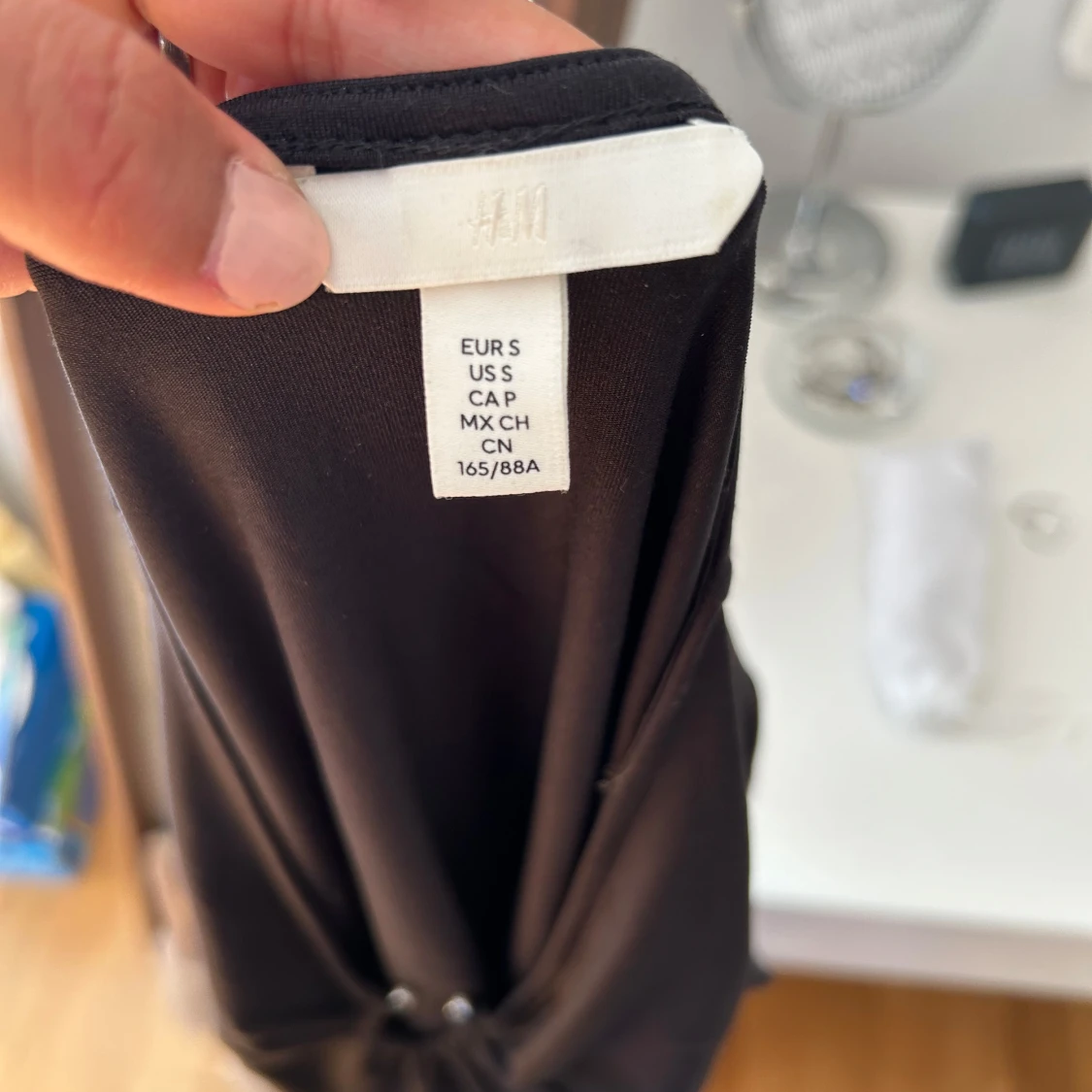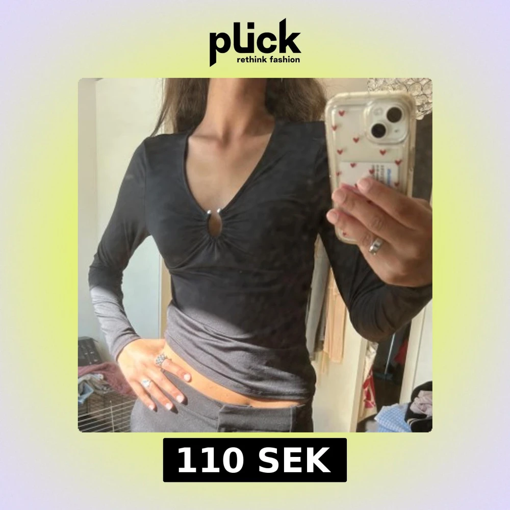 Svart långärmad topp från H&M i stretchigt material. Snygg v-ringning med liten cut-out och rynkdetalj framtill.