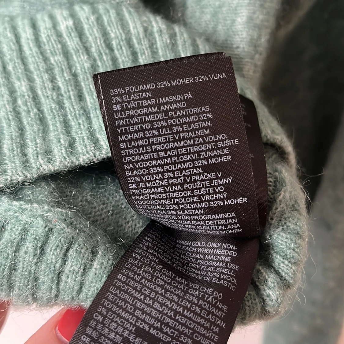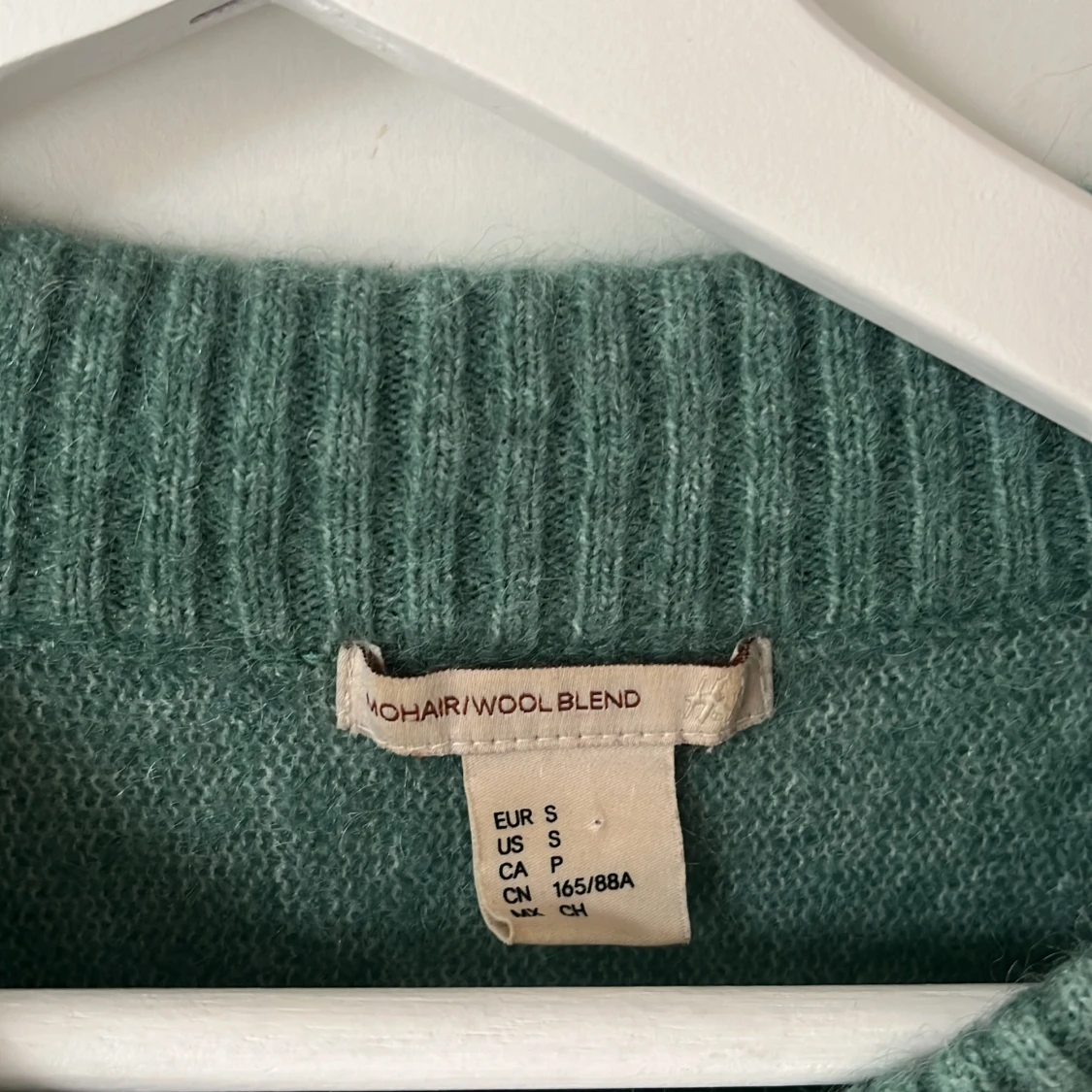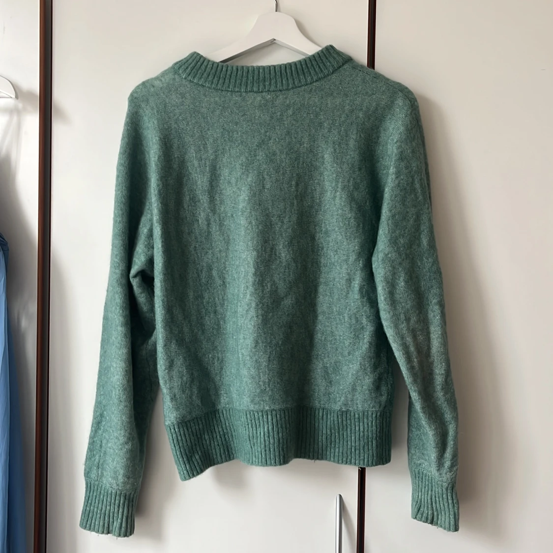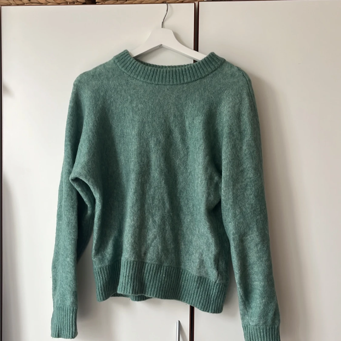 En grön stickad tröja i mohair- och ullblandning. Perfekt för lager-på-lager eller som den är