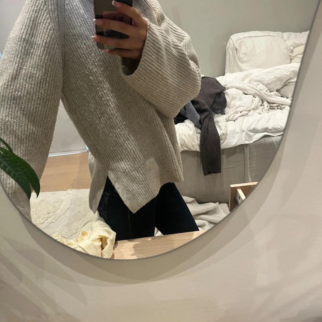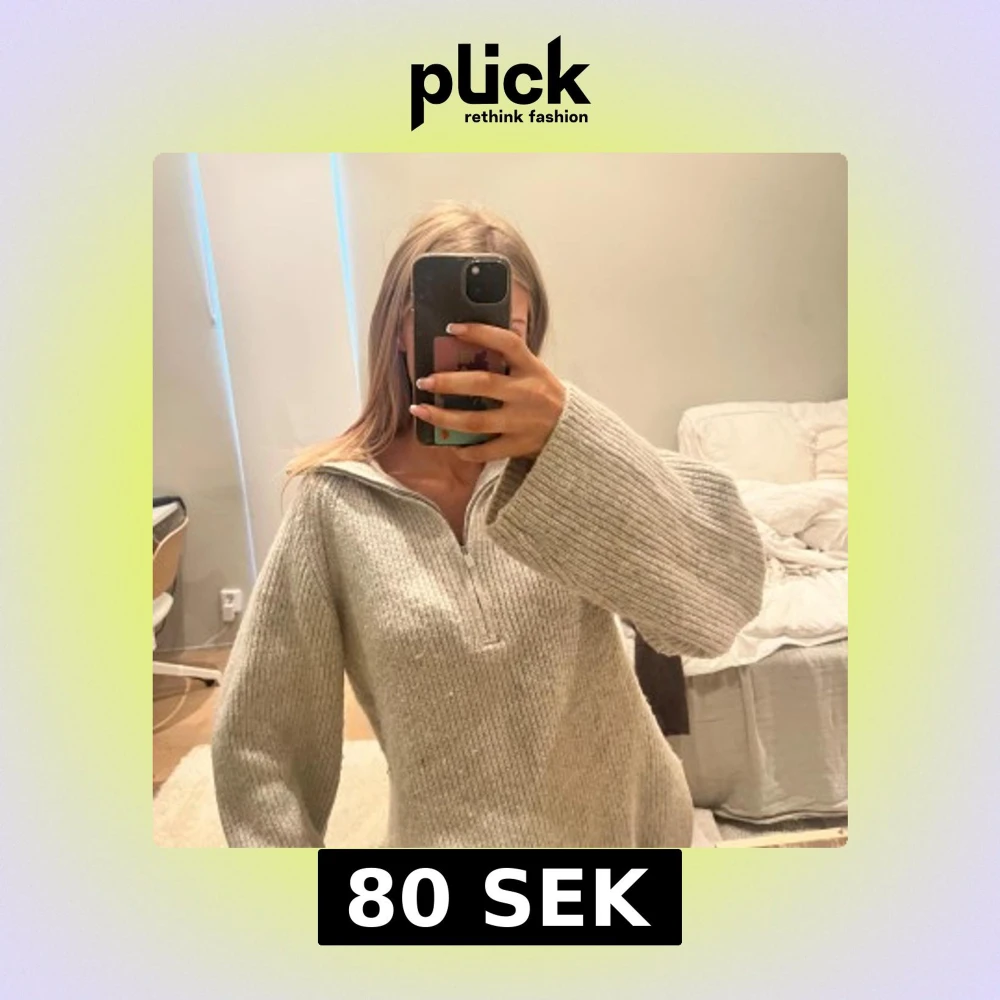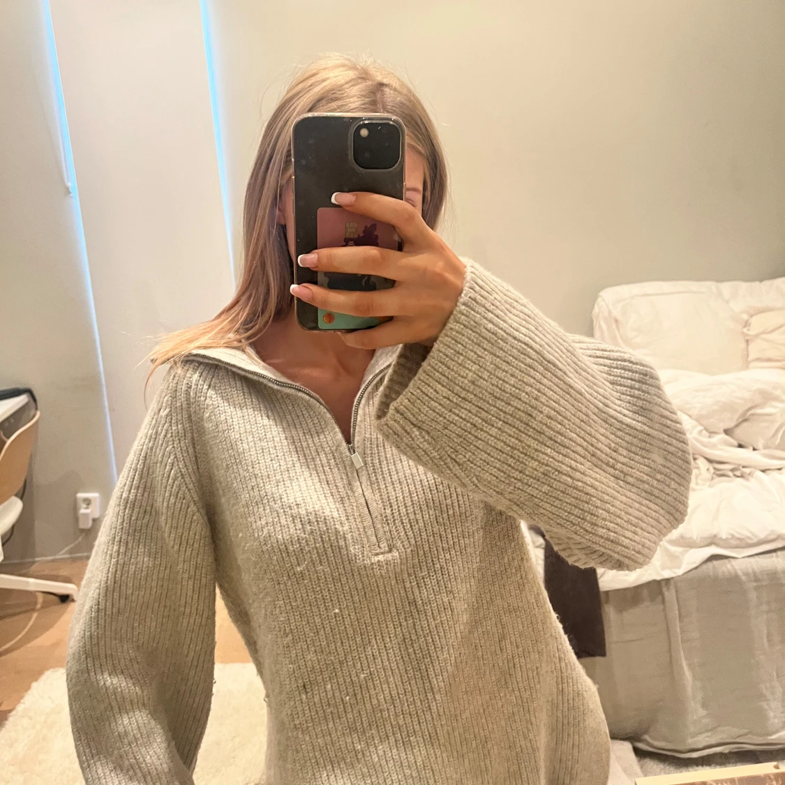 Supermysig beige ribbstickad tröja med half zip och breda ärmar. Tröjan har en avslappnad passform och slits i sidorna, perfekt för lager på lager. Passar dig som gillar en chill och oversized stil.