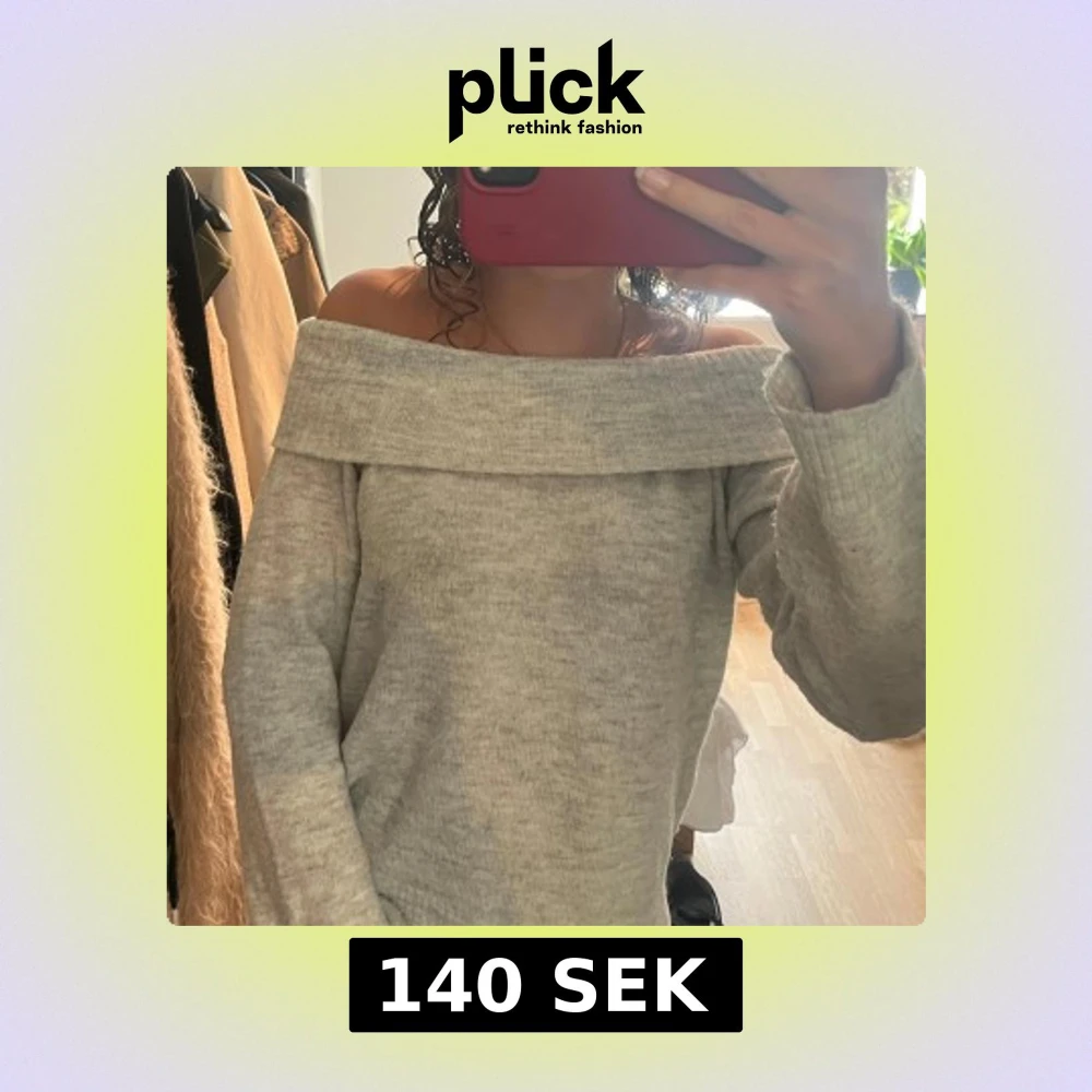 Supermjuk ljusgrå stickad tröja från H&M med bred offshoulder-krage som kan stylas på olika sätt.