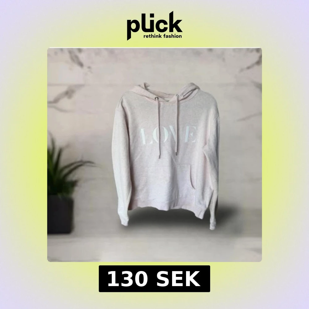 Supermysig ljusrosa hoodie från H&M L.O.G.G. med stort vitt LOVE-tryck på bröstet. Tröjan har huva med snörning och en klassisk känguruficka framtill.