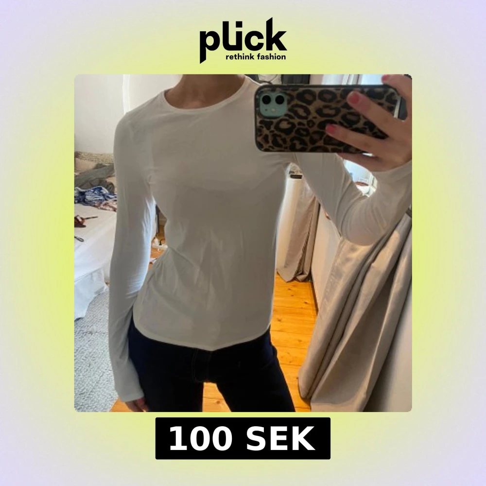Säljer en enkel och stilren vit långärmad topp med rund halsringning. Modellen är tight och passar perfekt till både jeans och kjol. Materialet känns mjukt och stretchigt, vilket gör den bekväm att bära hela dagen.