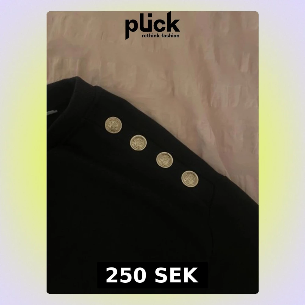 Säljer en svart tröja med fyra snygga guldknappar på. Perfekt för dig som vill ha en skön men ändå uppklädd stil.