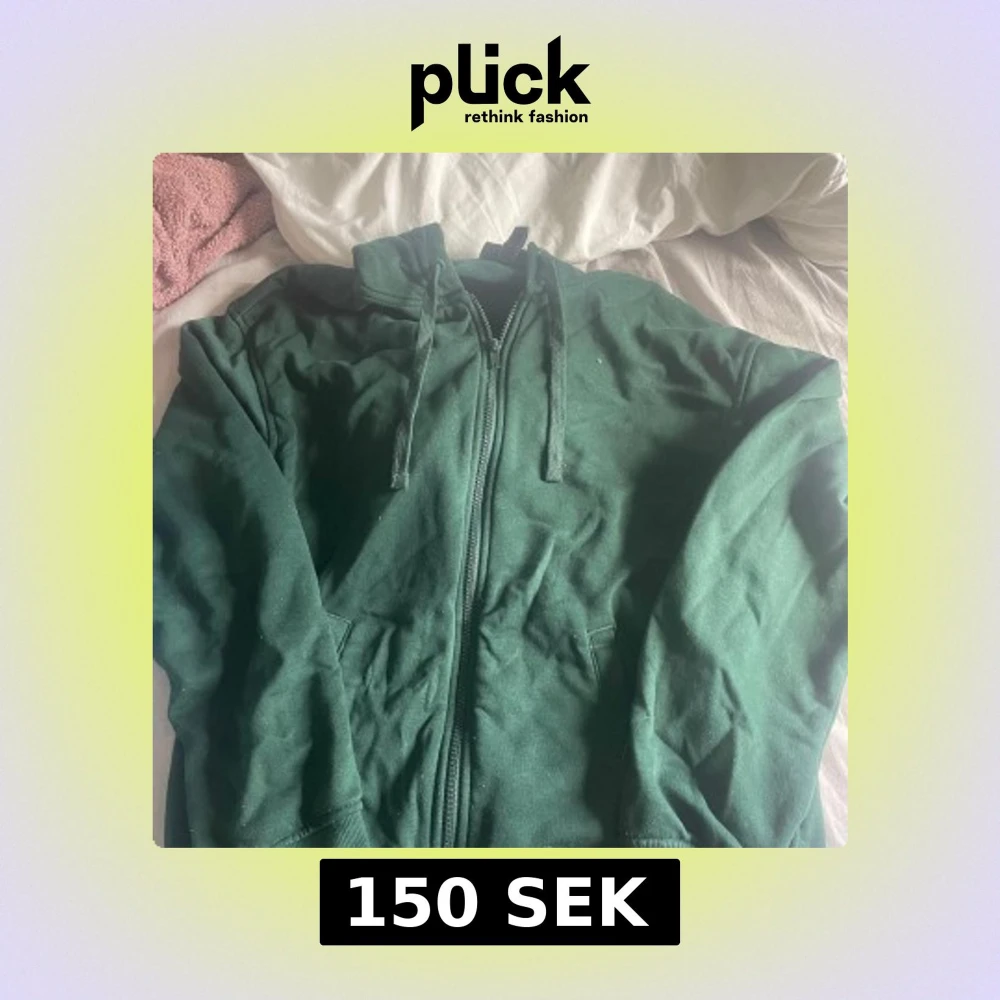 Mörkgrön hoodie från H&M i relaxed fit med dragkedja framtill och snörning i huvan. Tröjan har långa ärmar och två fickor på sidorna. Perfekt för chill dagar eller när du vill ha en enkel och stilren look.