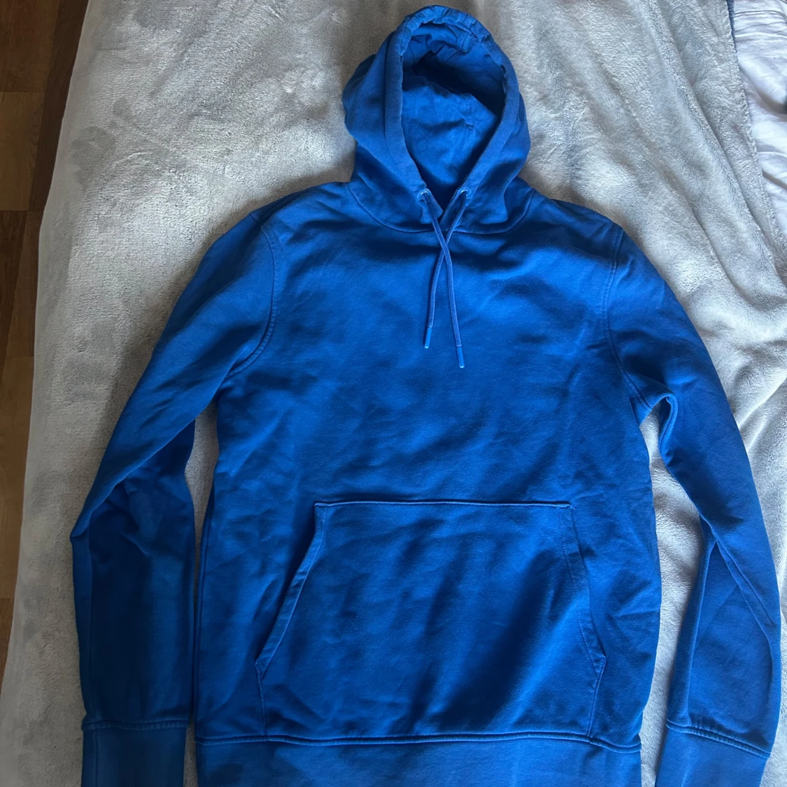 Snygg blå hoodie med klassisk huva och dragsnören. Tröjan har en stor magficka framtill och långa ärmar. Perfekt för en chill och avslappnad stil. Materialet känns mjukt och skönt mot huden.