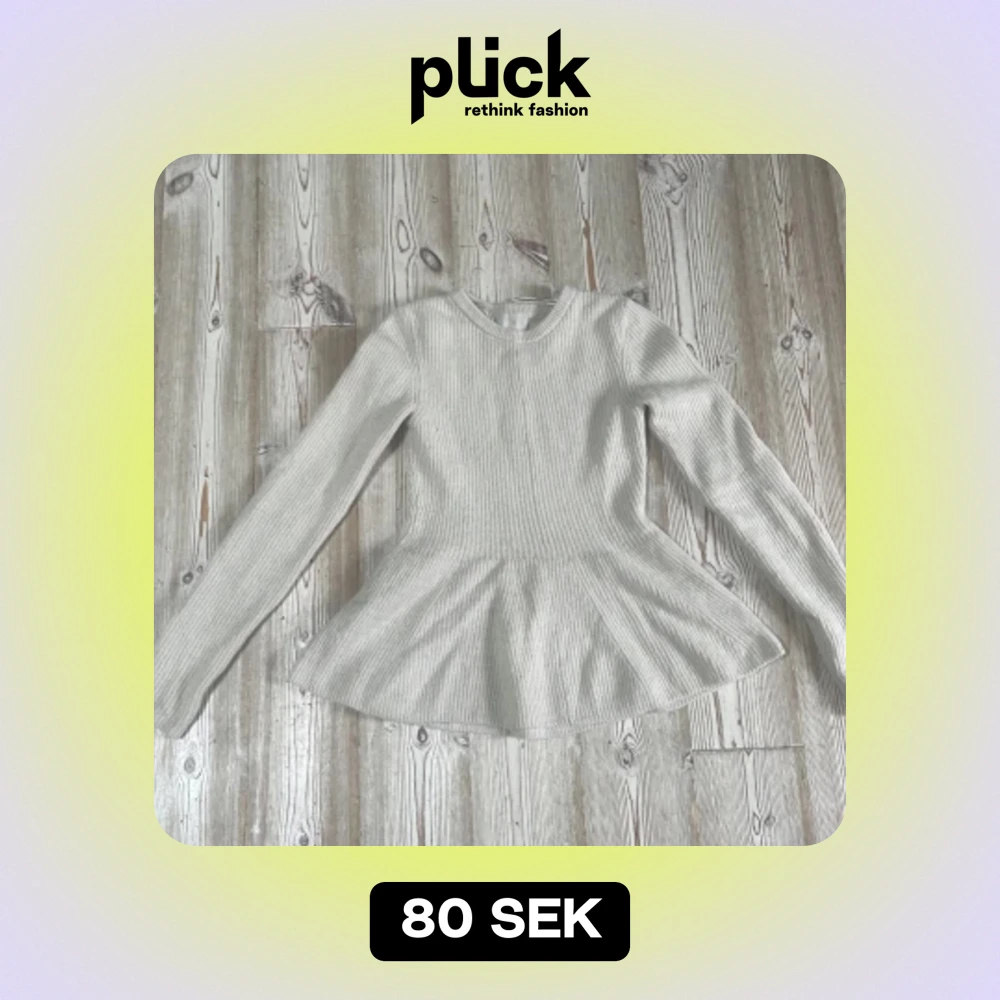 Säljer en superfin vit ribbad tröja från H&M. Den har en peplumdesign som ger en snygg siluett och är perfekt för både vardag och fest. Tröjan är långärmad och gjord i ett mjukt material som känns skönt mot huden. Passar perfekt till jeans eller kjol!