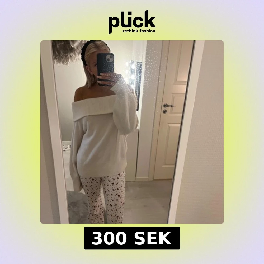 Säljer en mysig vit offshoulder tröja med långa ärmar från hm💞