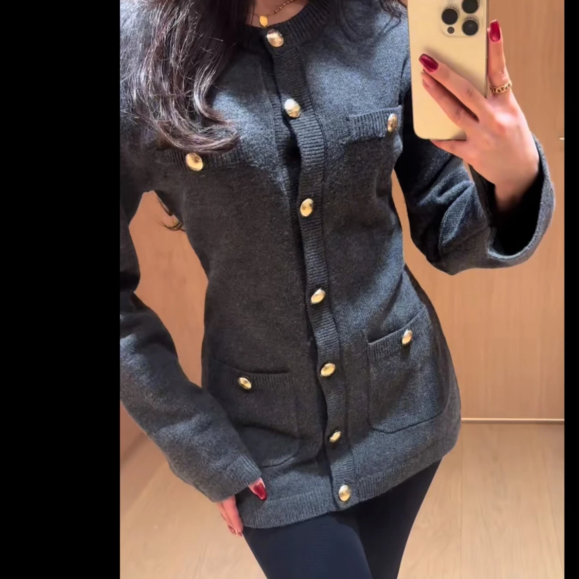 Snygg mörkgrå kofta med guldfärgade knappar från H&M. Tygbom har används på öppningen vid knapparna så man kan inte ha den öppet. Annars är den i jätte fin skick. 🫰🏼