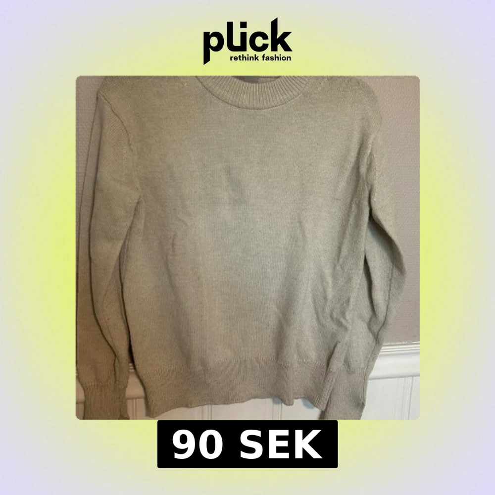 En stilren beige stickad tröja från H&M i storlek S. Tröjan har rund halsringning, ribbade muddar och är långärmad. Perfekt för lager-på-lager och enkel att matcha med jeans eller kjol.