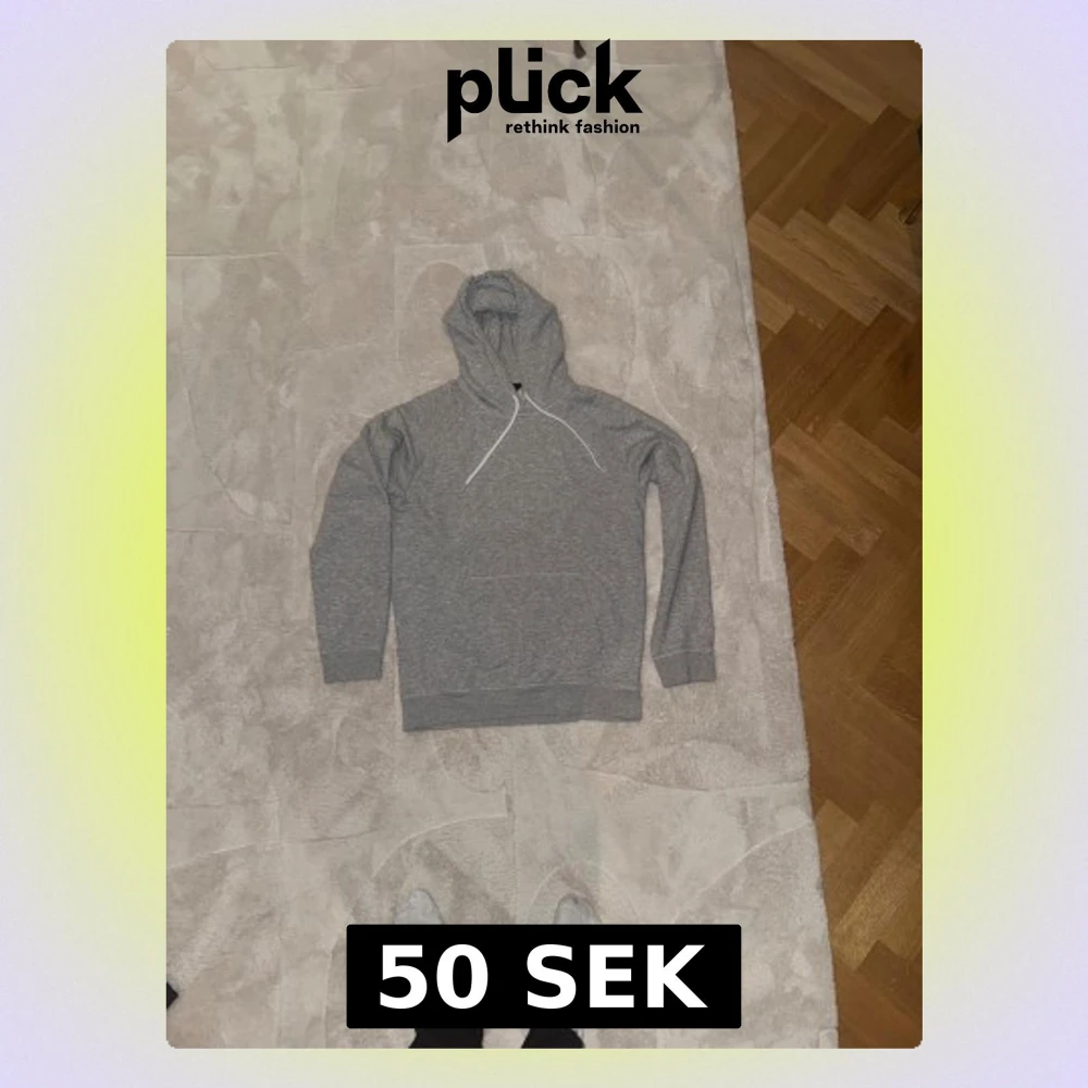 En stilren grå hoodie från H&M i regular fit, storlek S. Tröjan har en klassisk huva med vita snören och en stor magficka framtill. Mjuk bomullsmix som är perfekt för chill dagar. Långärmad och enkel att matcha med jeans eller joggers.