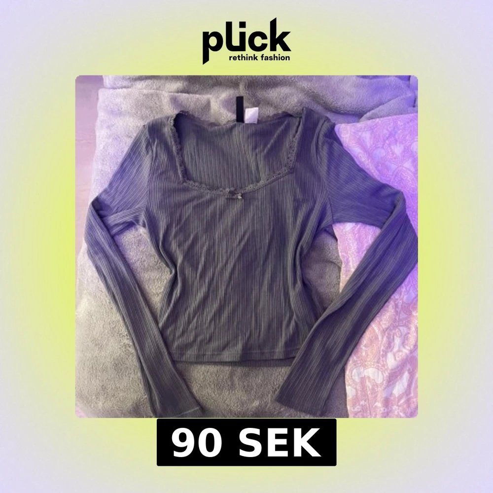 Säljer en stilren grå ribbad topp med spetsdetaljer vid halsringningen. Toppen har långa ärmar och en elegant passform. Perfekt för en chic vardagslook.