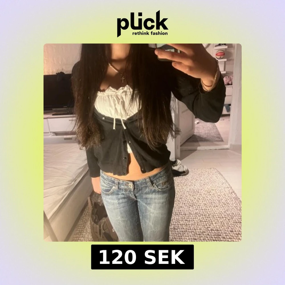 Säljer en stilren svart kofta med knappar framtill. Passar till vilket linne eller blus som helst. Perfekt för lager-på-lager-stil.