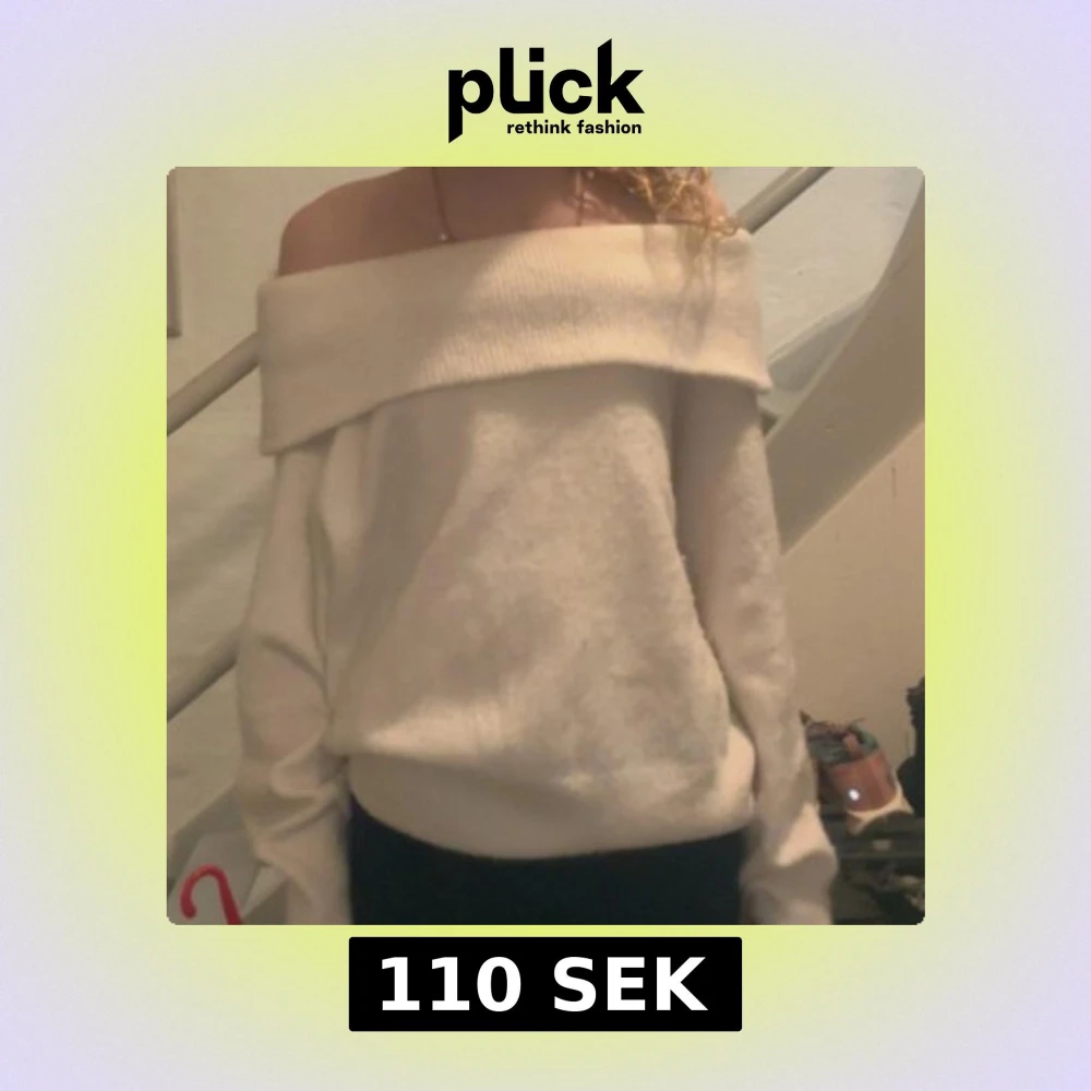 Säljer en stilren vit offshoulder tröja med långa ärmar. Tröjan har en bred krage som ger en elegant look. Perfekt för en avslappnad men chic stil.