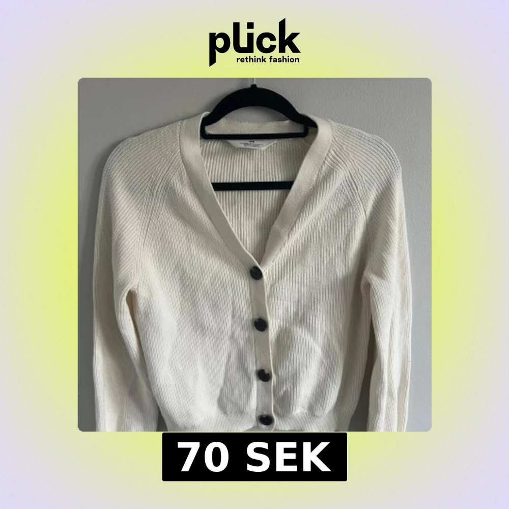 Säljer en vit kofta från H&M med ribbad struktur och stora svarta knappar framtill. Koftan har lång ärm och v-ringad halsringning, perfekt att slänga över en topp eller klänning. Den har en liten gul fläck på axeln, inte så märkbar. Använt flera gånger. Pris kan diskuteras!🩷