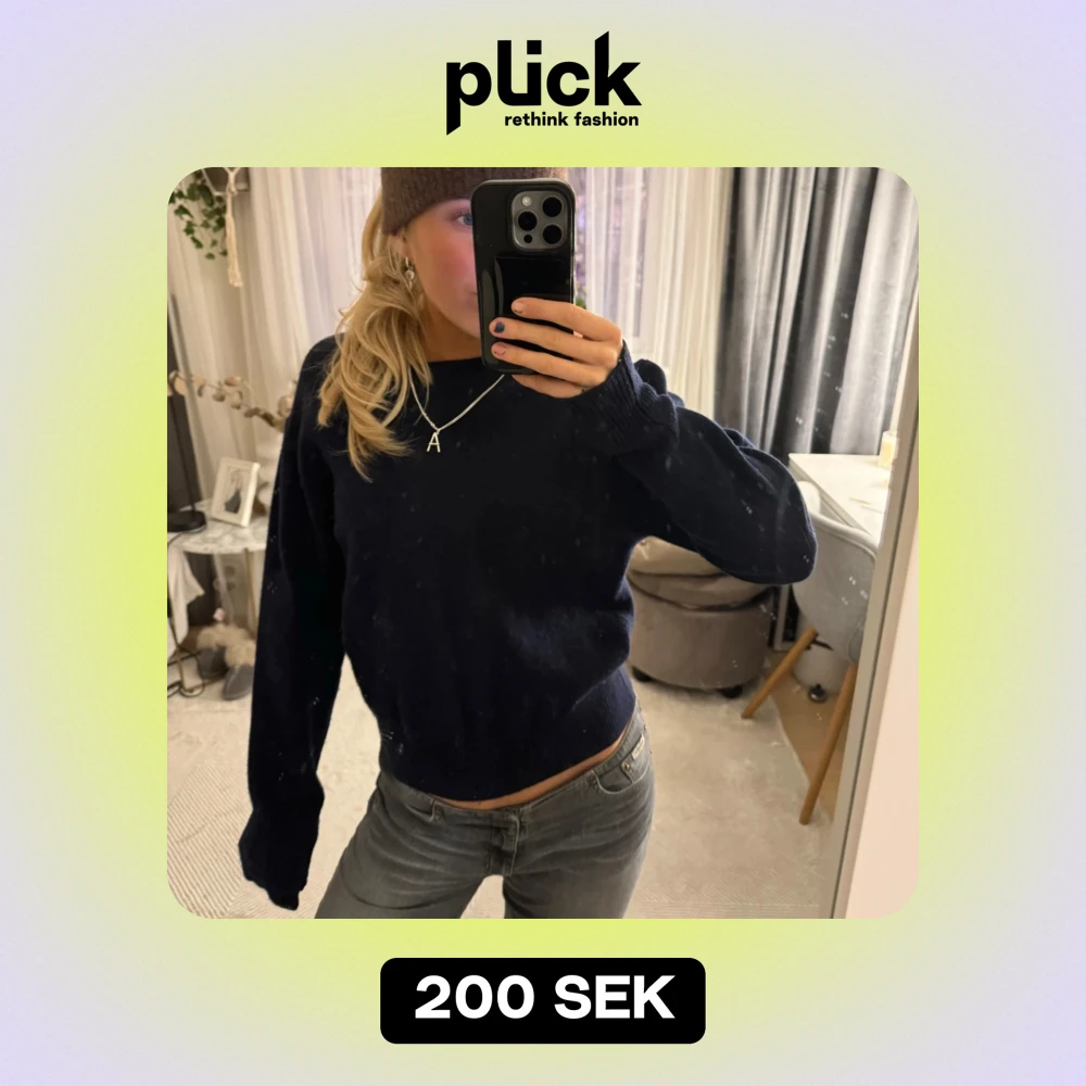 Säljer en mysig mörkblå stickad tröja som passar till allt! Så skön och snygg passform❣️❣️