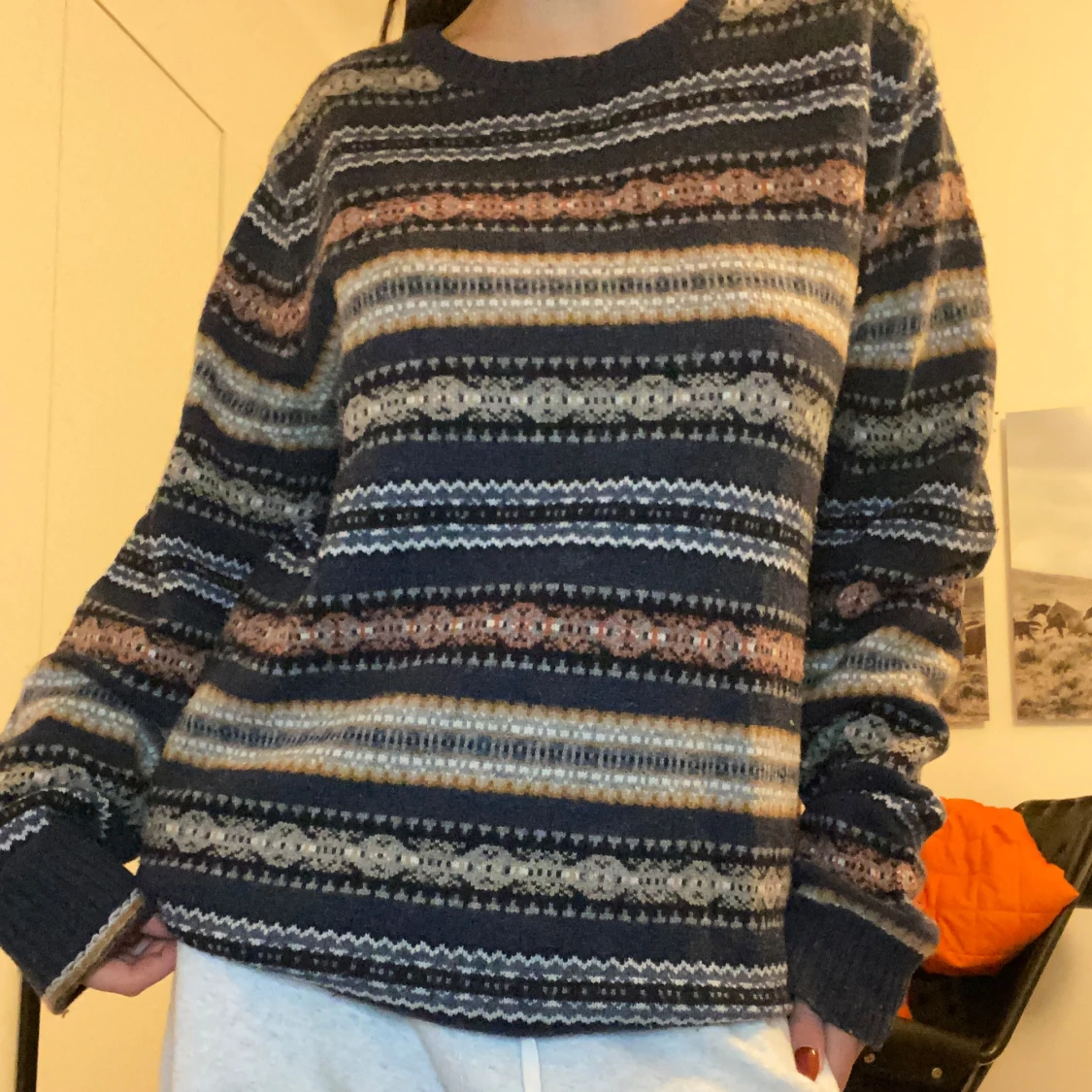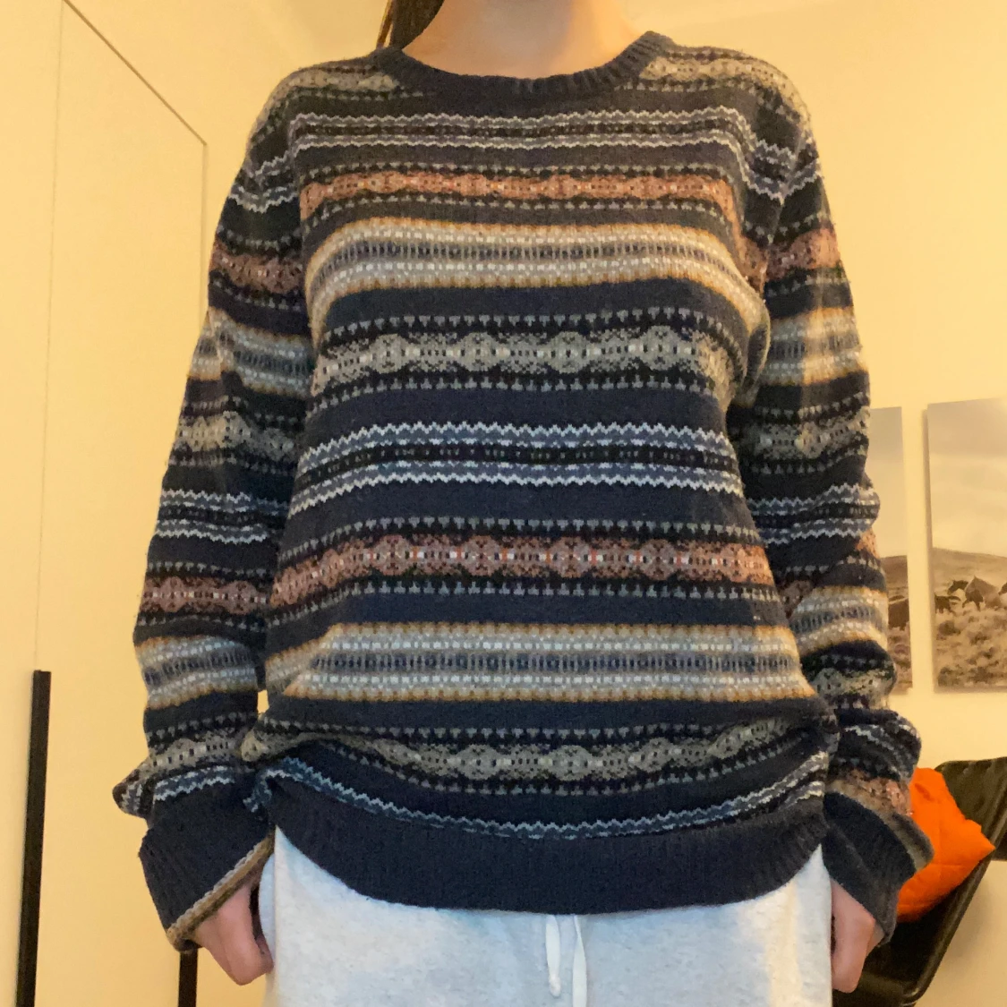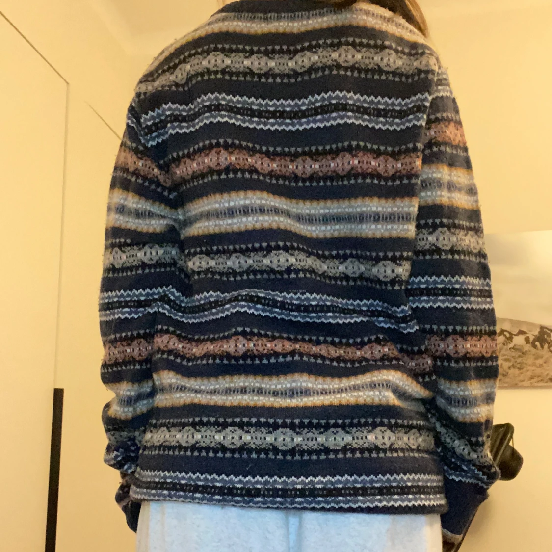 Säljer en supermysig blå stickad tröja med ett snyggt mönster, väldigt mysig och väldigt varm ! (Skriv för pris eller fler bilder)