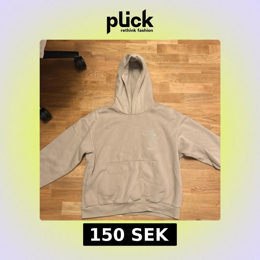 Snygg beige hoodie från H&M i loose fit med stor huva och magficka. Mjuk insida i fleece och diskret broderad text på bröstet. Perfekt för chill dagar och enkel att matcha med jeans eller joggers.