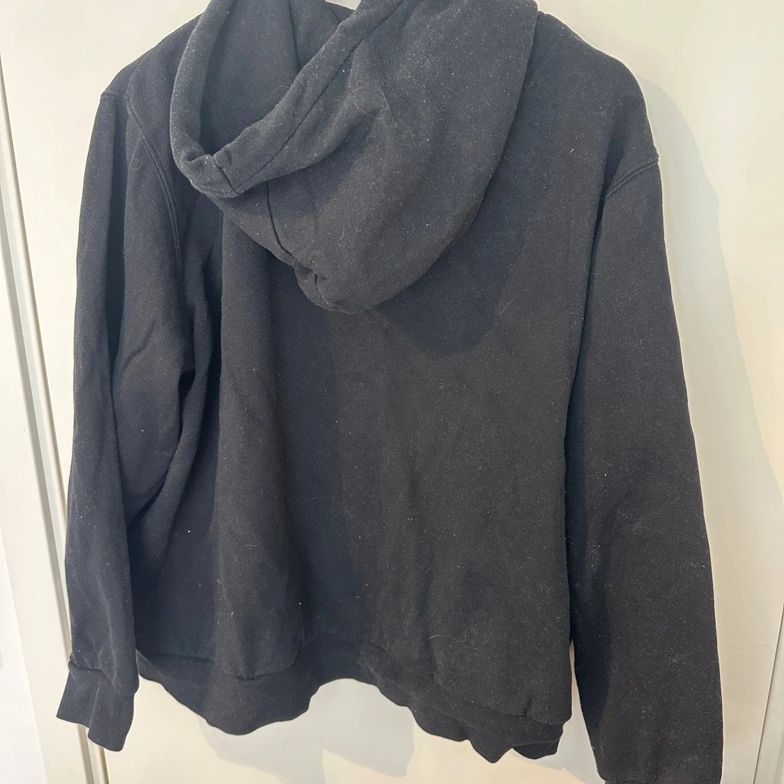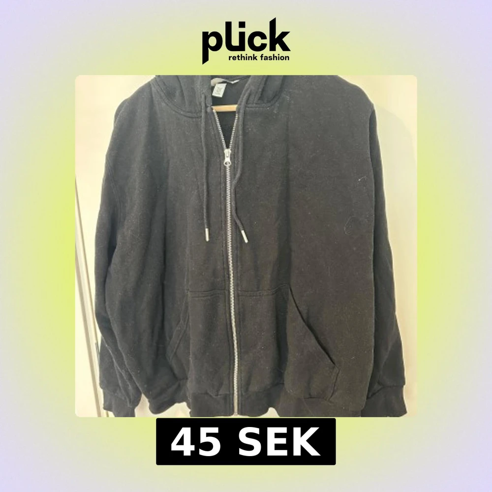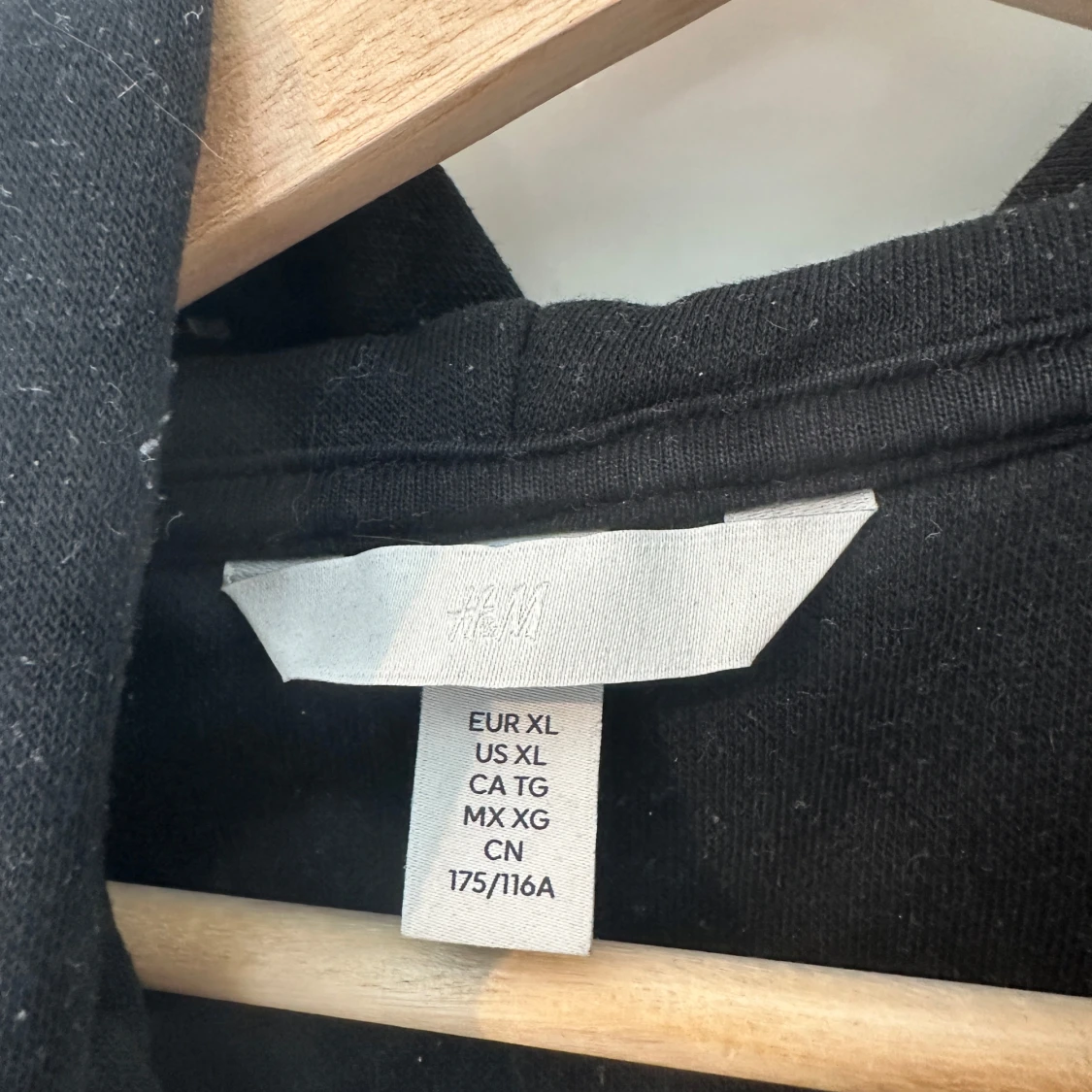 Svart hoodie från H&M i storlek XL med huva och snörning. Tröjan har en praktisk dragkedja framtill och två stora fickor. Materialet är mjukt och känns skönt mot huden, perfekt för chill dagar. Klassisk loose passform och långärmad design. Använd fåtal gånger.
