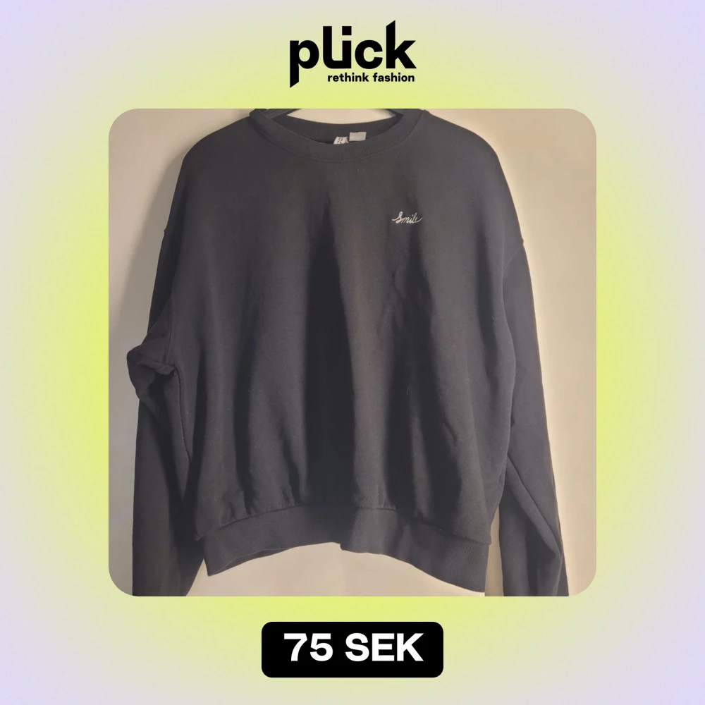 Säljer en svart sweatshirt från H&M i storlek XL. Den har en enkel design med texten 'Smile' broderad på bröstet. Perfekt för en avslappnad stil och passar till alla tillfällen. Tröjan är i bra skick och redo för en ny ägare!