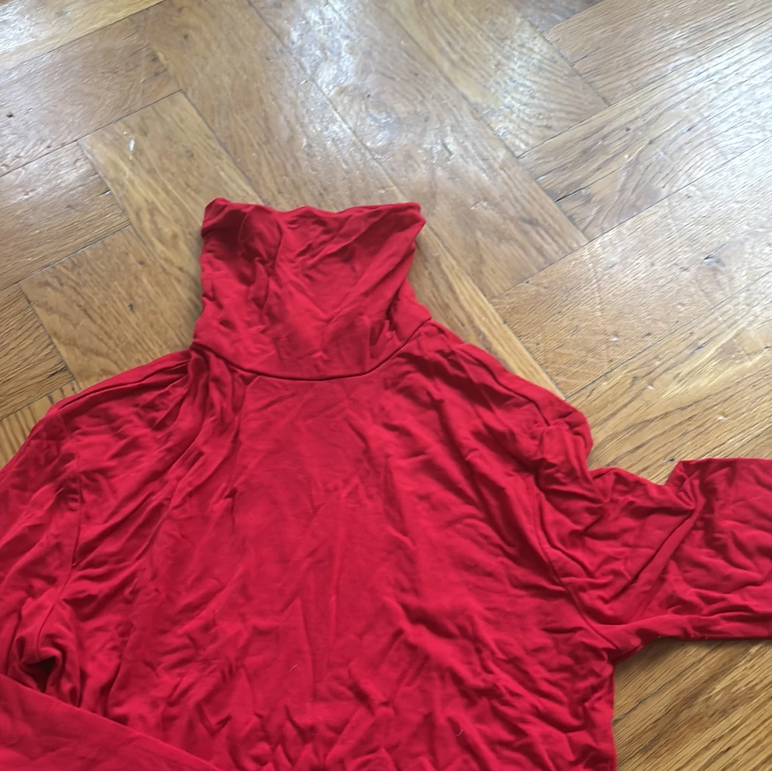 Säljer en röd polotröja från H&M i storlek XS. Tröjan har lång ärm och en hög krage som ger en chill och snygg look. Materialet är mjukt och stretchigt, perfekt för lager-på-lager under hösten och vintern. Passar dig som gillar enkel och stilren design.