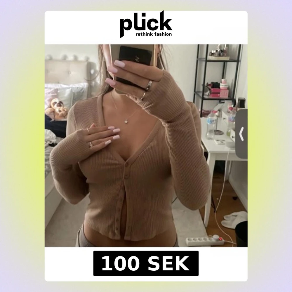 Säljer en beige croppad kofta med ribbad struktur och v-ringad hals. Koftan har långa ärmar och knappar framtill, vilket ger en snygg och trendig look. Perfekt att matcha med jeans eller kjol för en chill stil.