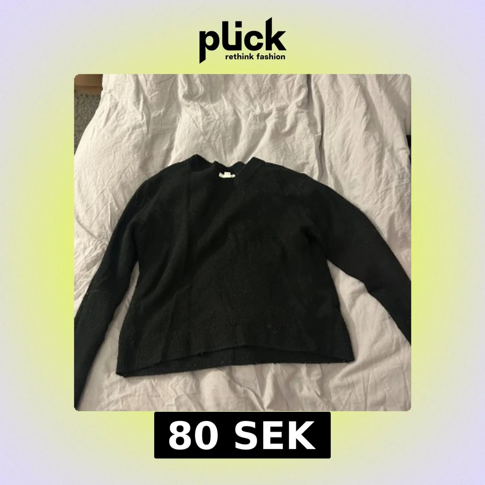 Svart stickad tröja från H&M i storlek XS. Tröjan har rund halsringning och långa ärmar med ribbade muddar. Enkel och stilren design som funkar till många olika looks. Perfekt för dig som gillar basic och svart.