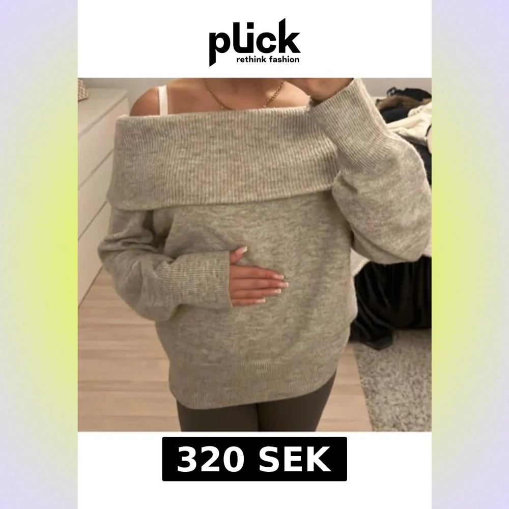 Superfin beige stickad tröja från H&M med bred ribbad offshoulder-krage. Tröjan har lång ärm och en loose fit som ger en chill vibe. Perfekt till höst och vinter för en mysig och trendig look.