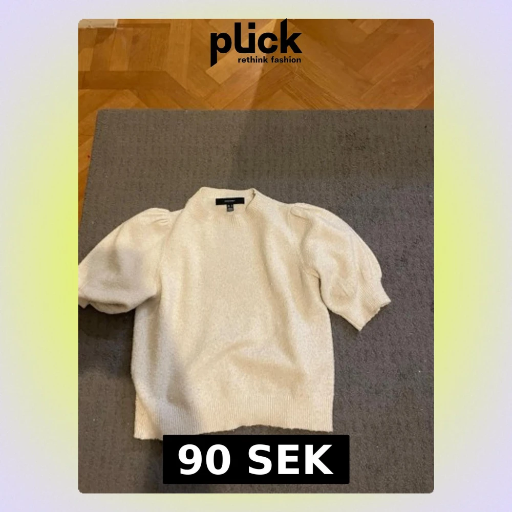 Säljer en krämvit tröja från H&M med puffärmar och ribbade muddar. Tröjan har en mjuk, lite fluffig struktur och kortare ärmar som ger en trendig look. Perfekt att styla med jeans eller kjol för en cool vardagsoutfit. Köpte den för 400-300