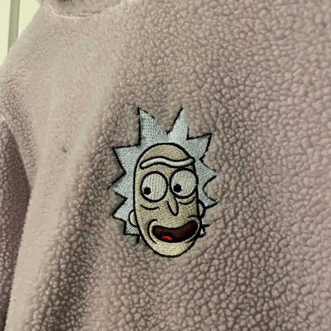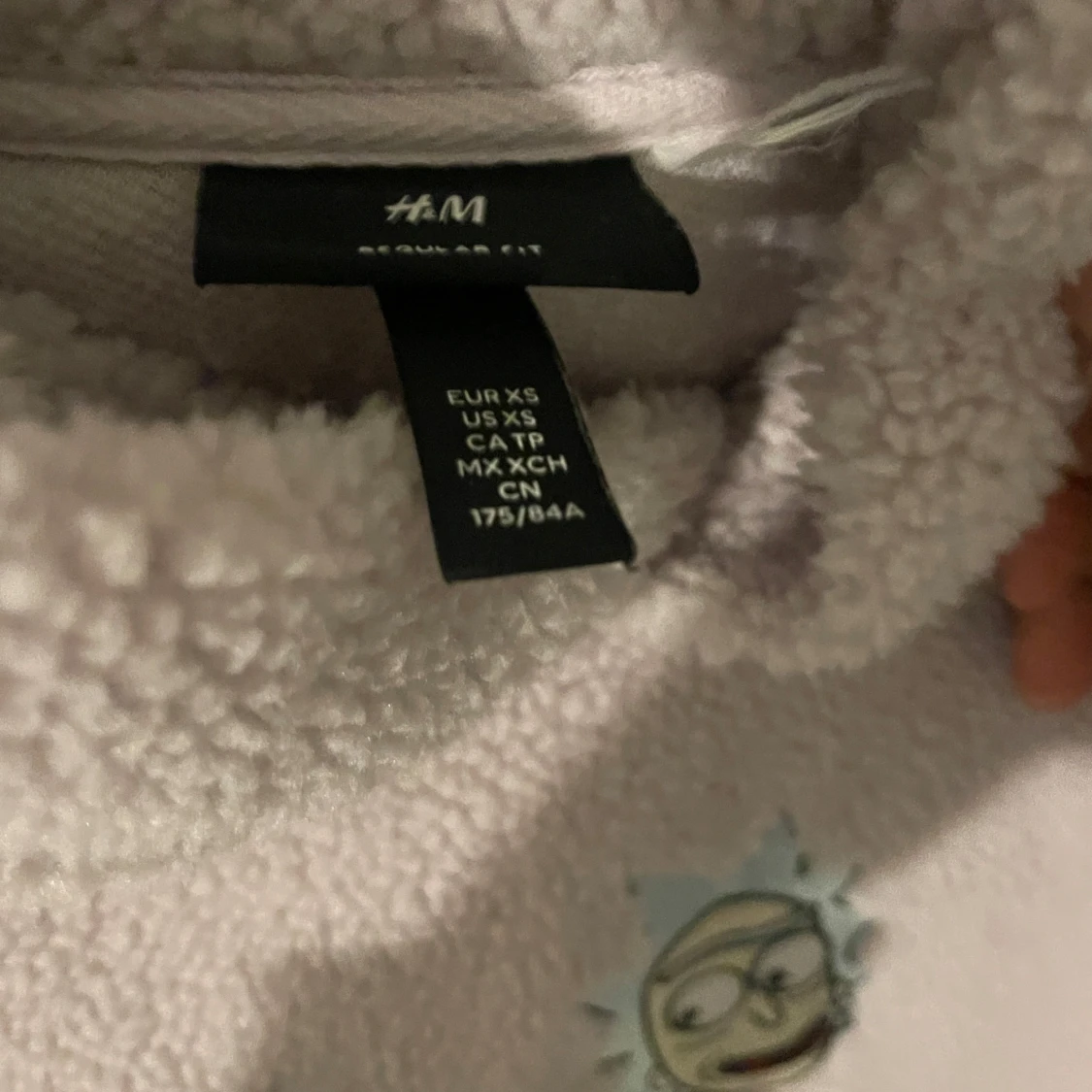 Mysig ljuslila fleece hoodie från H&M med en broderad karaktär på bröstet. Perfekt för kyliga dagar med sin mjuka och varma känsla. Har en praktisk magficka och huva.