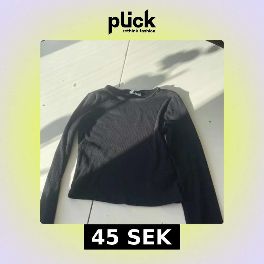 En svart, ribbad långärmad topp från H&M Divided i storlek XS. Enkel och stilren modell med rund halsringning, perfekt att matcha med jeans eller kjol. Mjuk och stretchig bomullskvalitet som sitter snyggt på kroppen.
