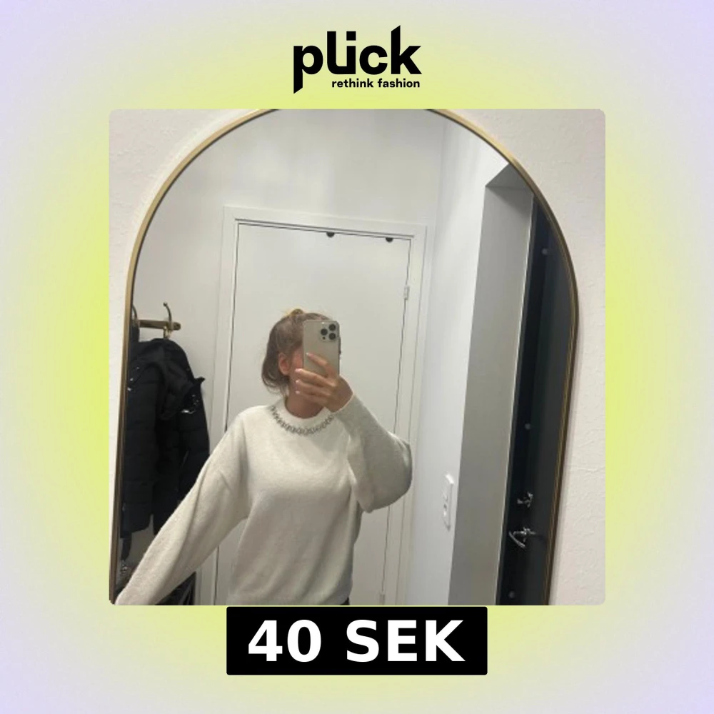 Superfin vit stickad tröja med rund halsringning och snygga pärldetaljer runt kragen. Tröjan har en loose passform och långa ärmar, perfekt för att hålla sig varm och ändå se stylish ut.