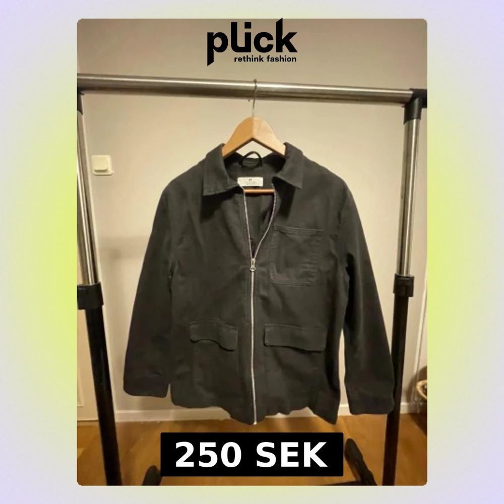 Svart overshirt från H&M i storlek 152. Jackan har en clean look med dragkedja framtill, klassisk krage och tre fickor. Materialet är mjukt och känns som bomull, perfekt för lager-på-lager. Passformen är normal och ärmarna är långa.