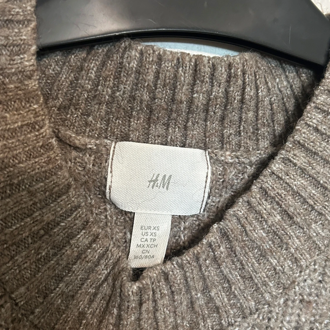 Mysig brun stickad tröja från H&M med rund halsringning och ribbade muddar. Perfekt för lager-på-lager och chill höst- eller vinterstil. Klassisk modell med lång ärm och relaxed fit.