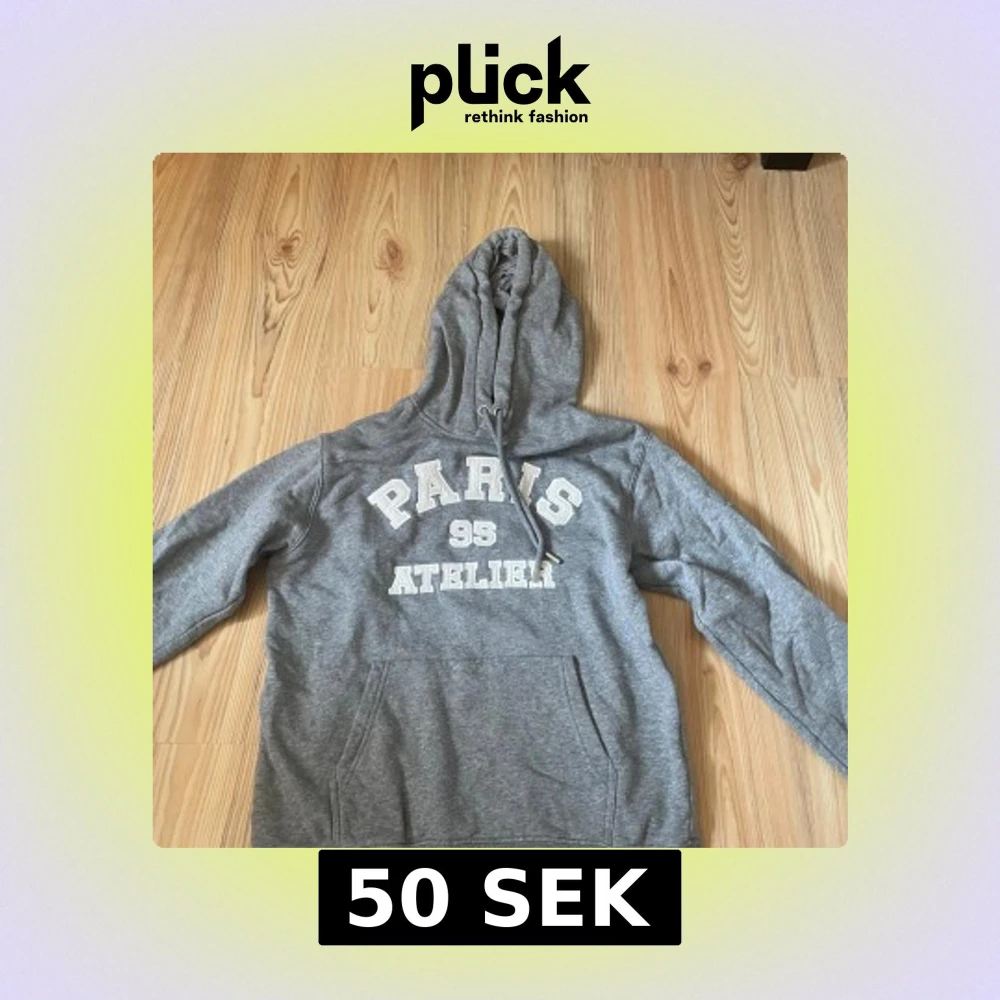 Grå hoodie med huva och snörning, samt magficka. Tryck i vitt framtill med texten 'PARIS 95 ATELIER'. Perfekt för en chill och avslappnad stil. Mjuk insida och klassisk passform.