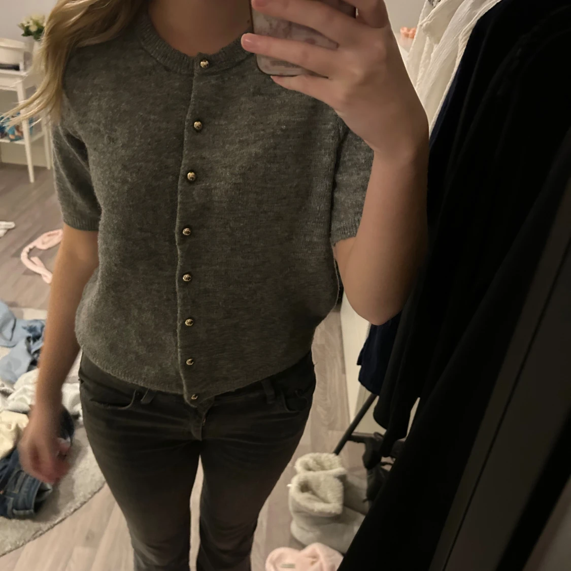 Grå stickad kofta