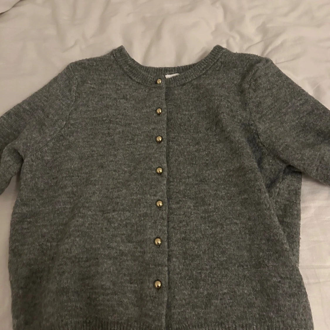 Mysig grå stickad kofta! Superskön och knappt använd!!